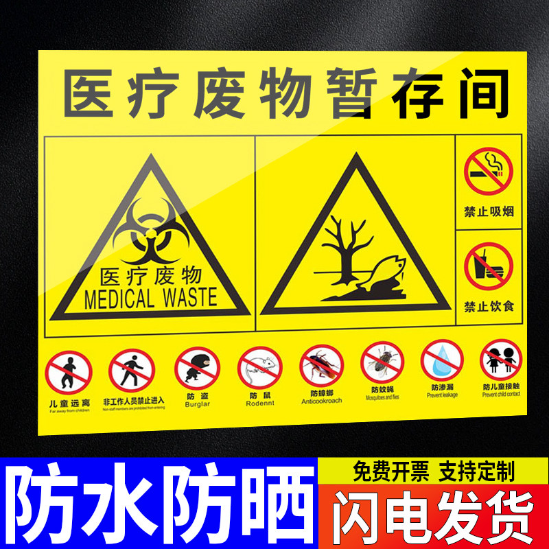 📚 新版医疗废物标贴医疗废物暂存间标识医废暂存点标识医费院感标识2025年新国标危废标志牌损伤性废物标识定制