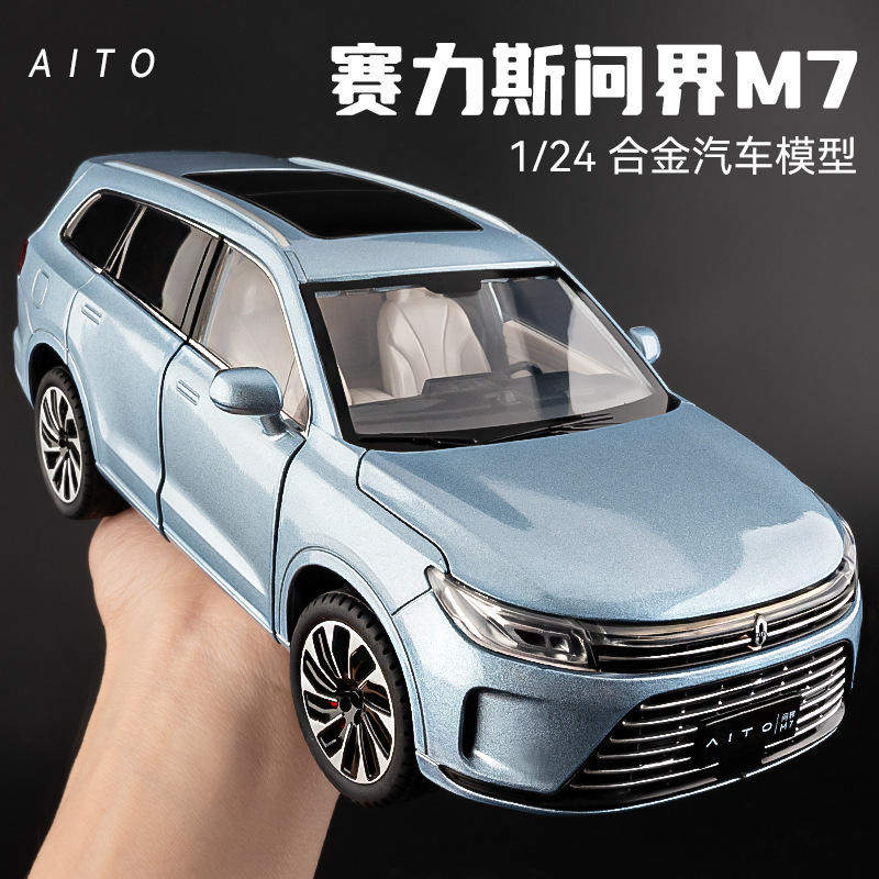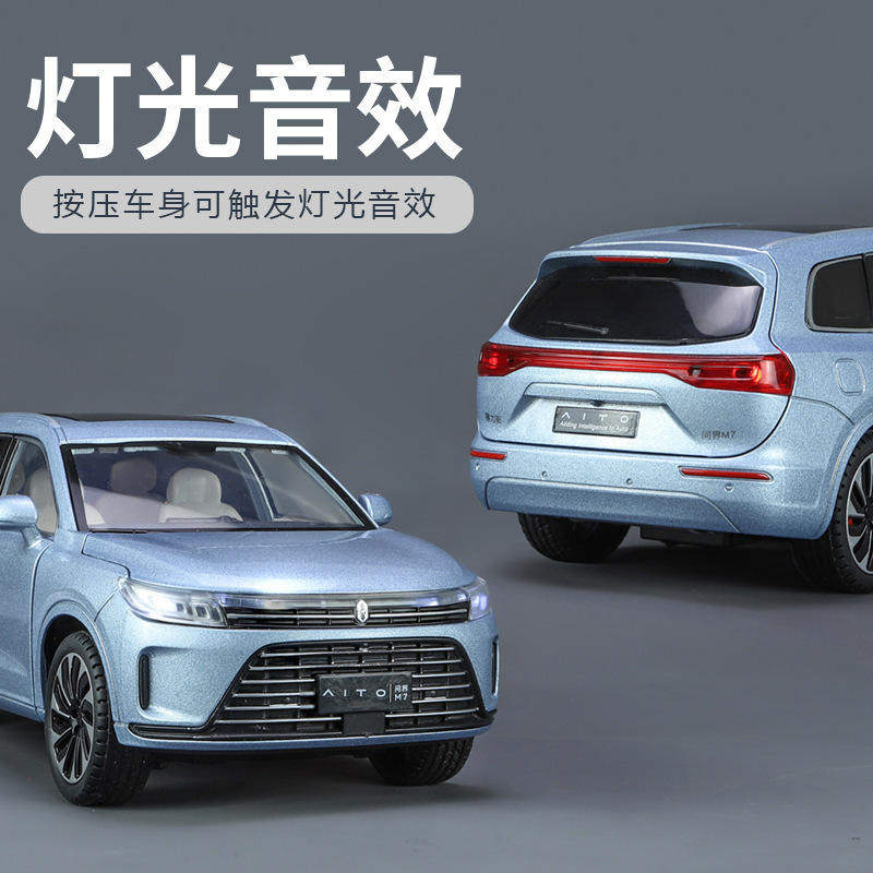 📚 新款1:24华为问界M7合金汽车模型玩具车开门声光避震转向喇叭