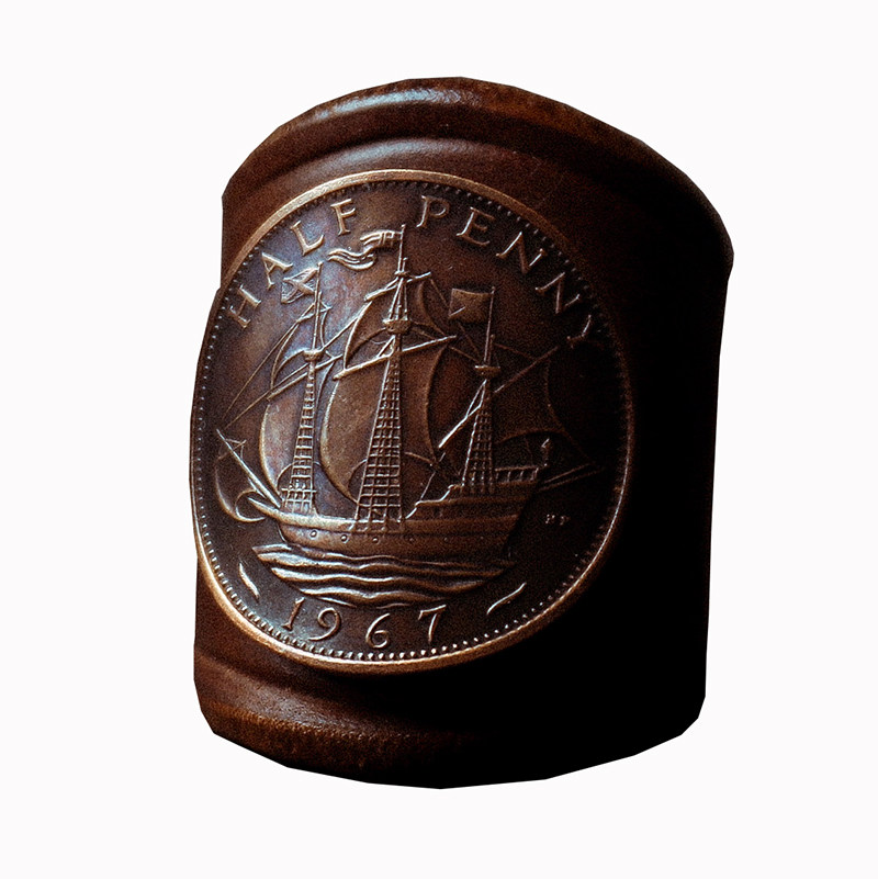 💥种草!复古风爆款,霍尔文茶芯油蜡牛皮金帆船钱币方巾扣,超值券后价仅74.1!