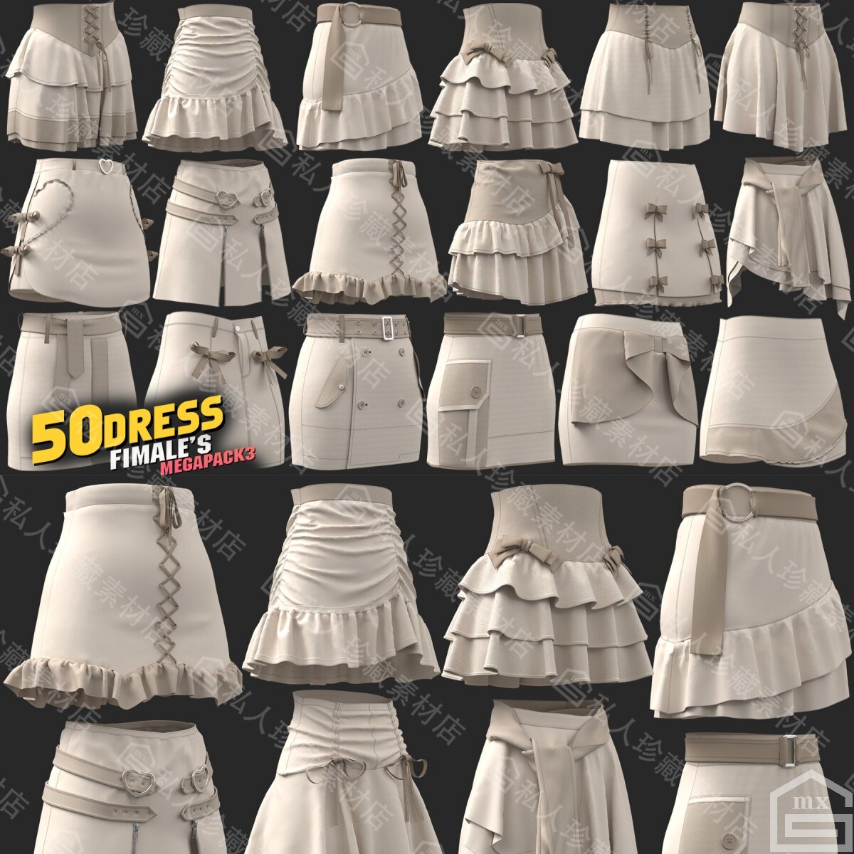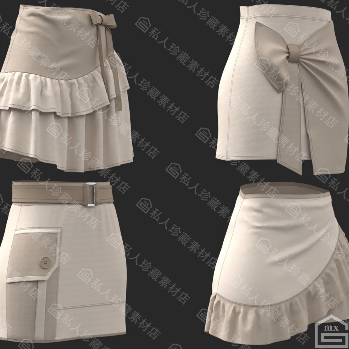 📚 Marvelous Designer clo3d女性裙子短裙包臀百褶裙3D模型MD源文件