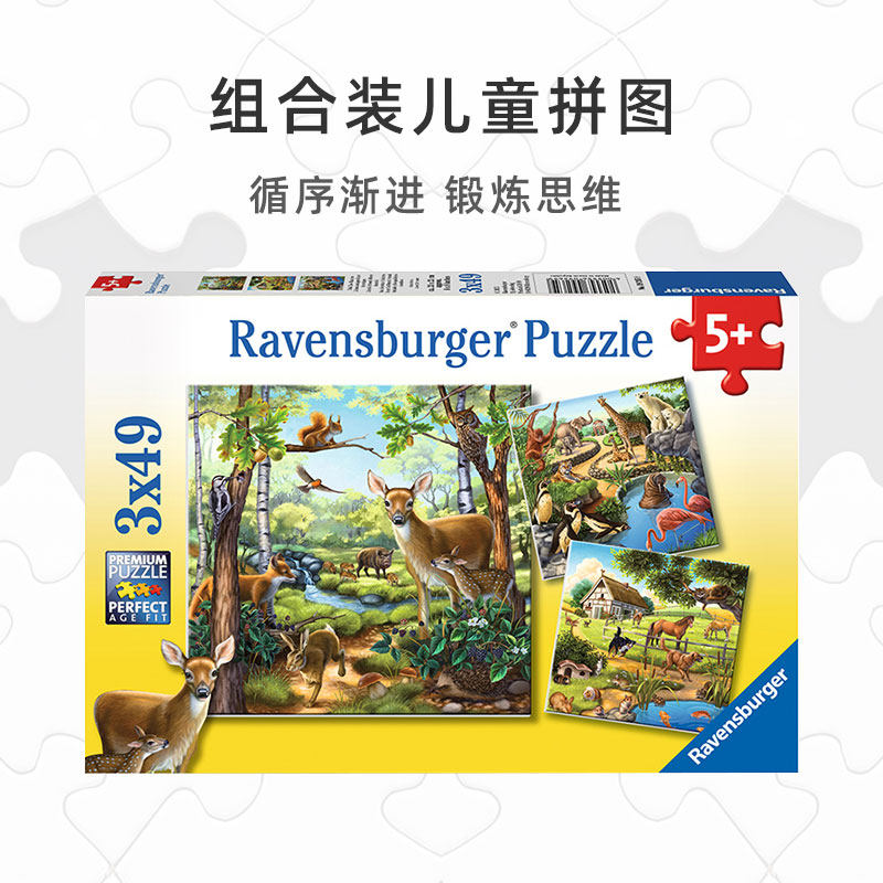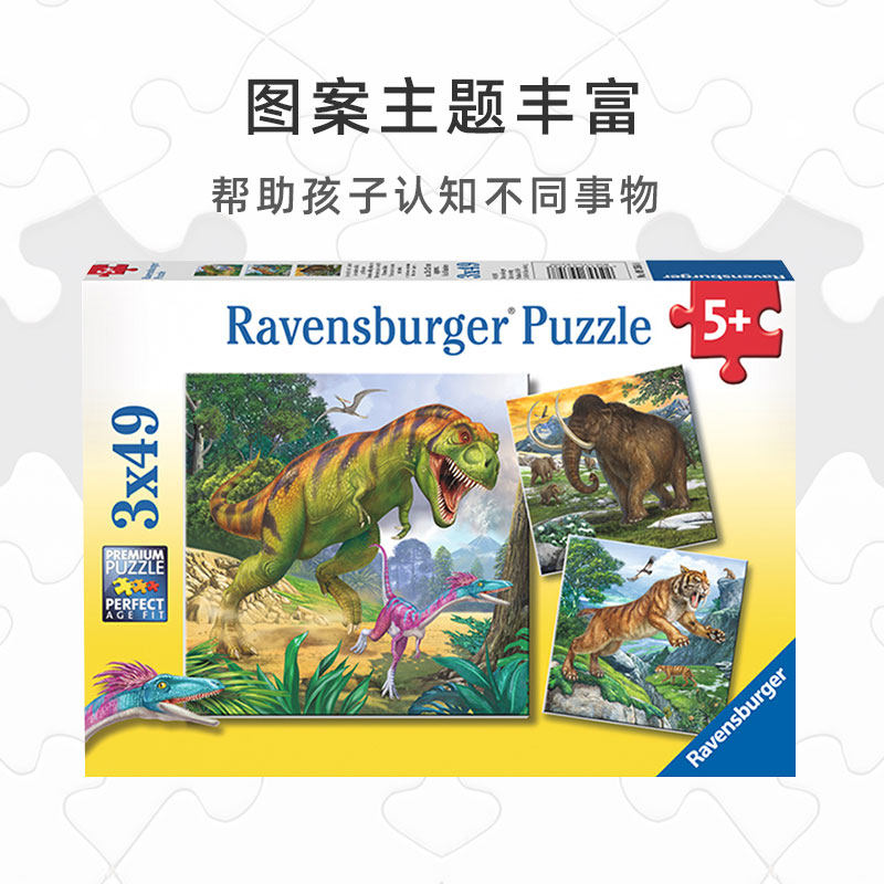 📚 睿思ravensburger儿童益智拼图玩具3x49片动物飞机恐龙3到6岁