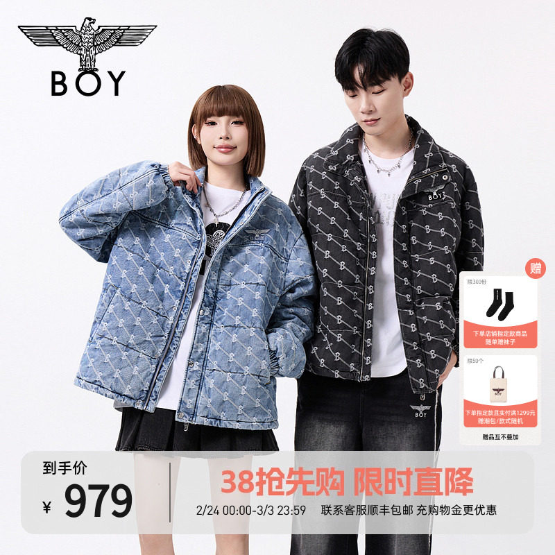 📚 BOYLONDON冬季短款情侣棉服潮牌外套提花保暖水洗牛仔棉衣N29901