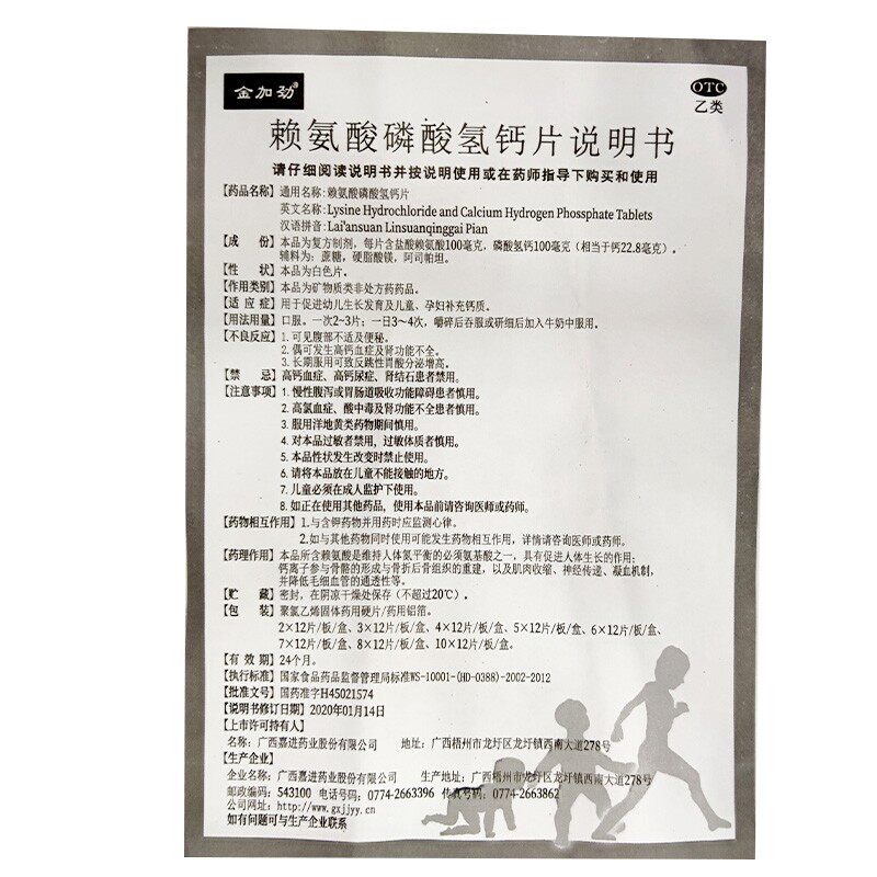 📚 金加劲赖氨酸磷酸氢钙片60片促进幼儿生长发育及儿童孕妇补充钙质