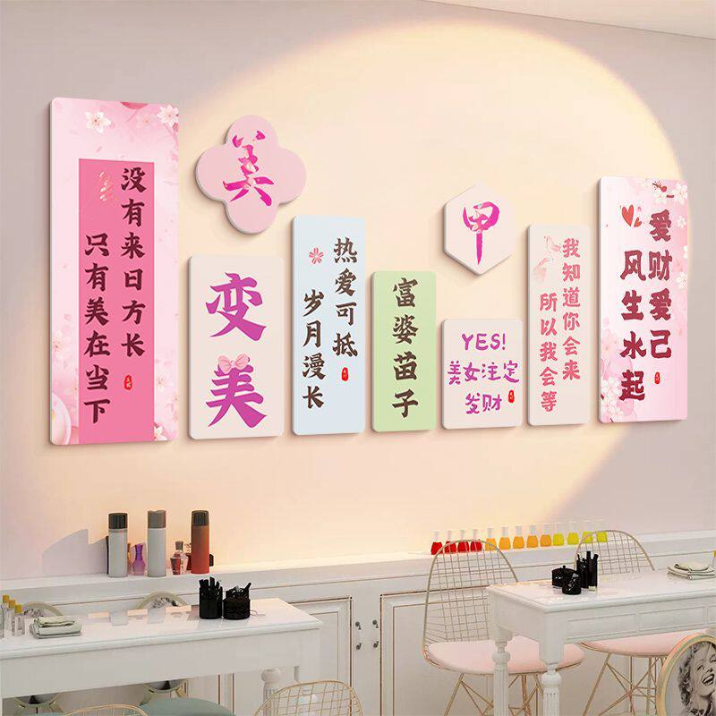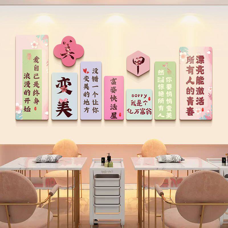 📚 美容院房间装饰品场景布置美睫美甲店墙面装饰文化形象墙贴纸画