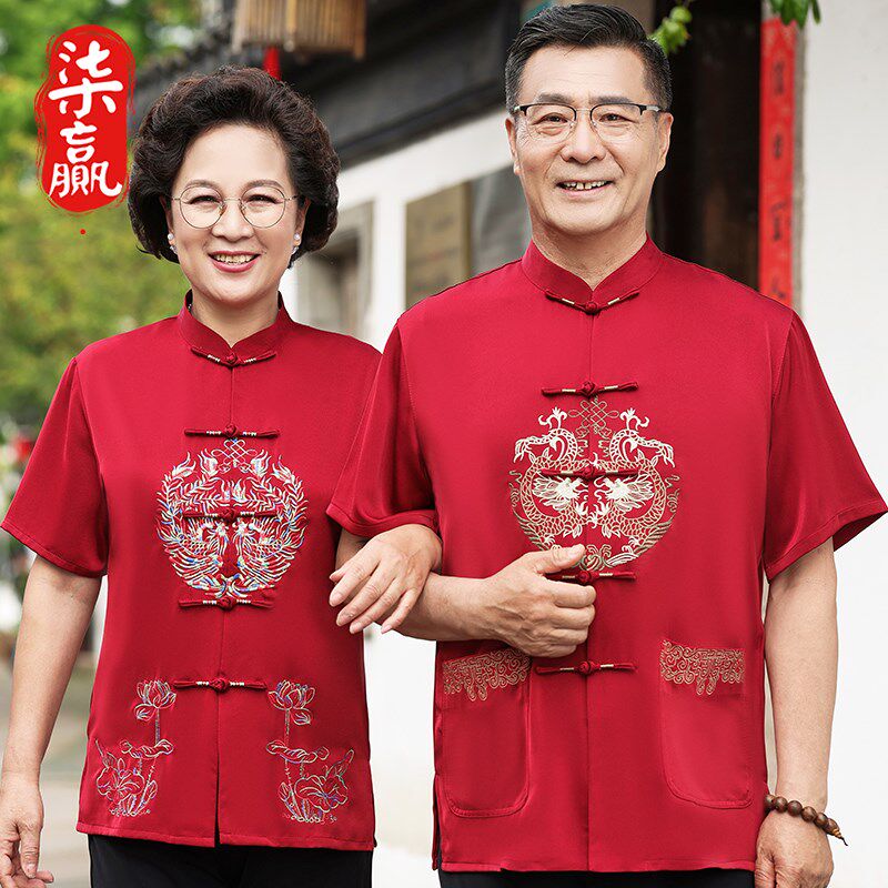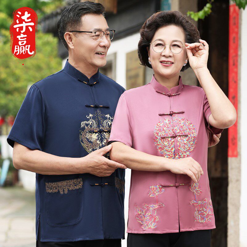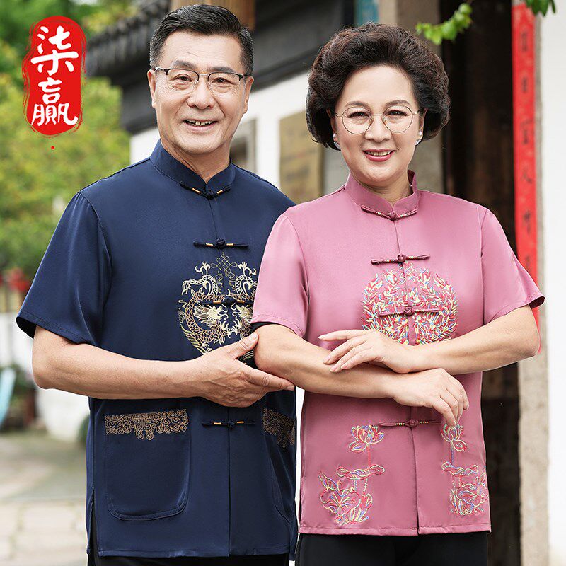 📚 速发中老年唐装父母装爸爸妈妈情侣装老年衣生日祝寿人服父母亲宴