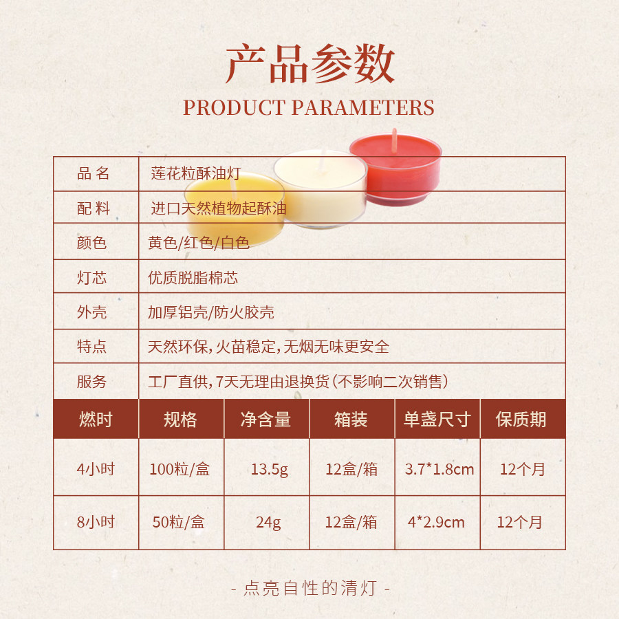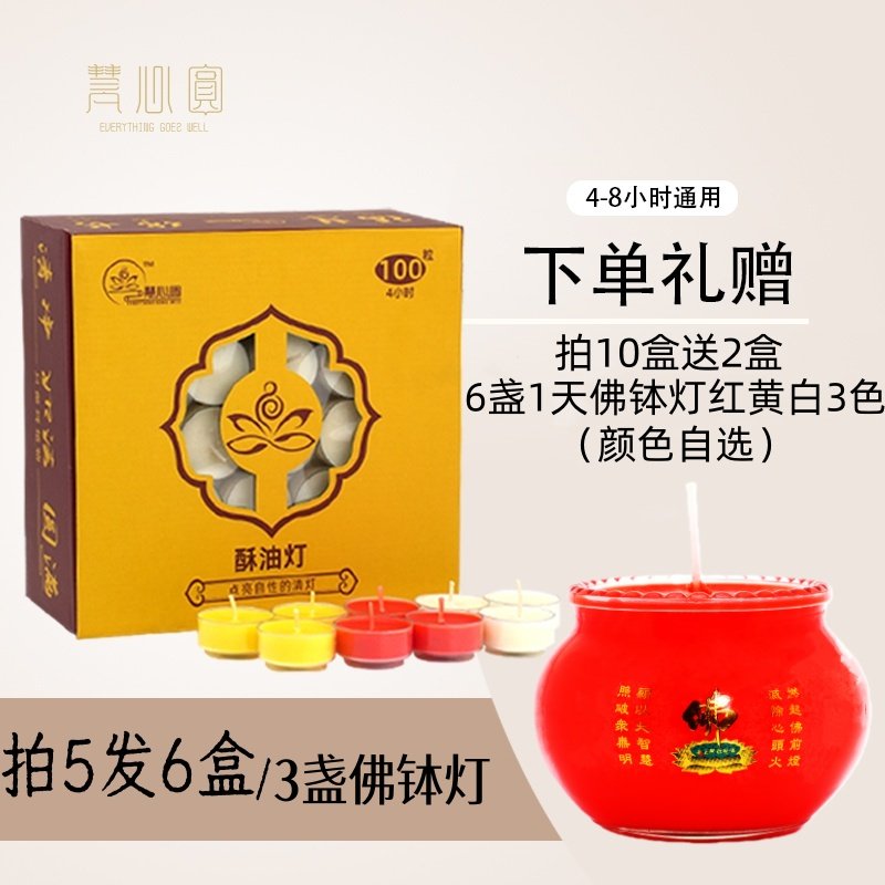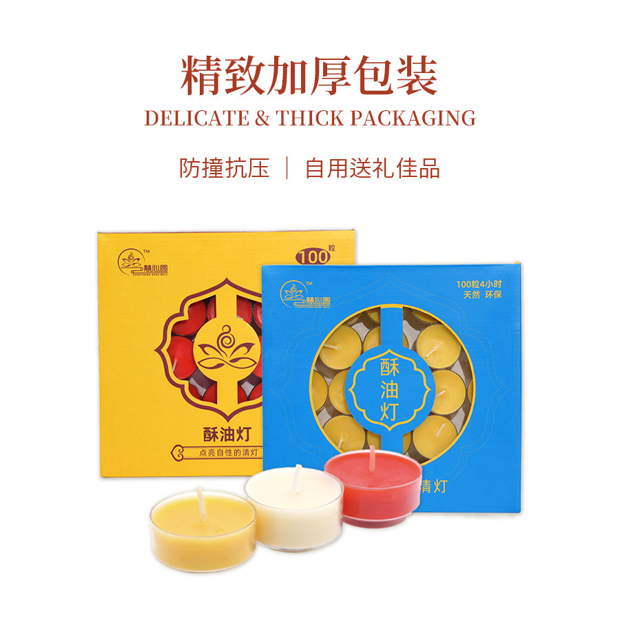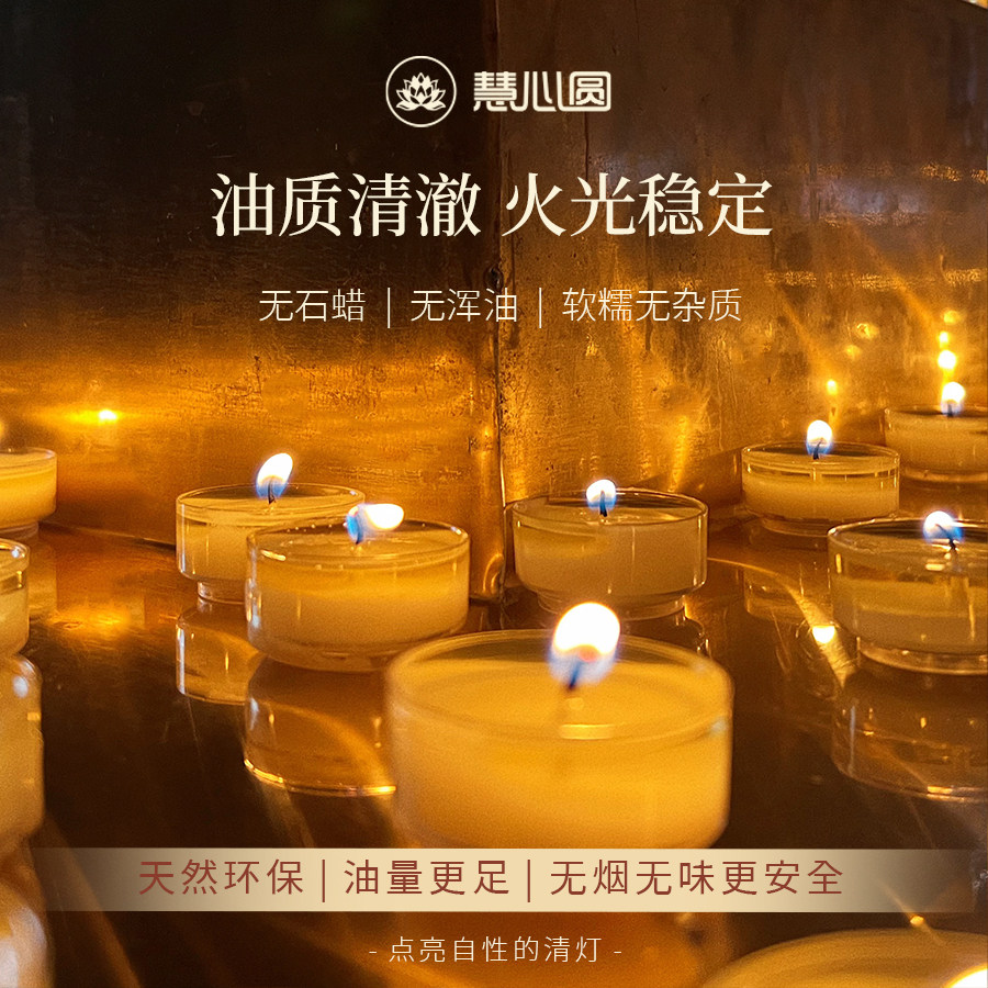 📚 慧心圆 莲花粒纯植物酥油灯胶壳4/8小时无烟酥油灯家用佛灯蜡烛