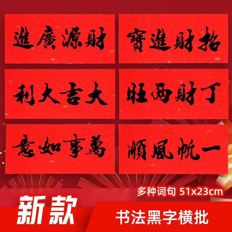 📚 春节书法横批四字大门横幅书法黑字横联门上横幅贴纸春节装饰用品