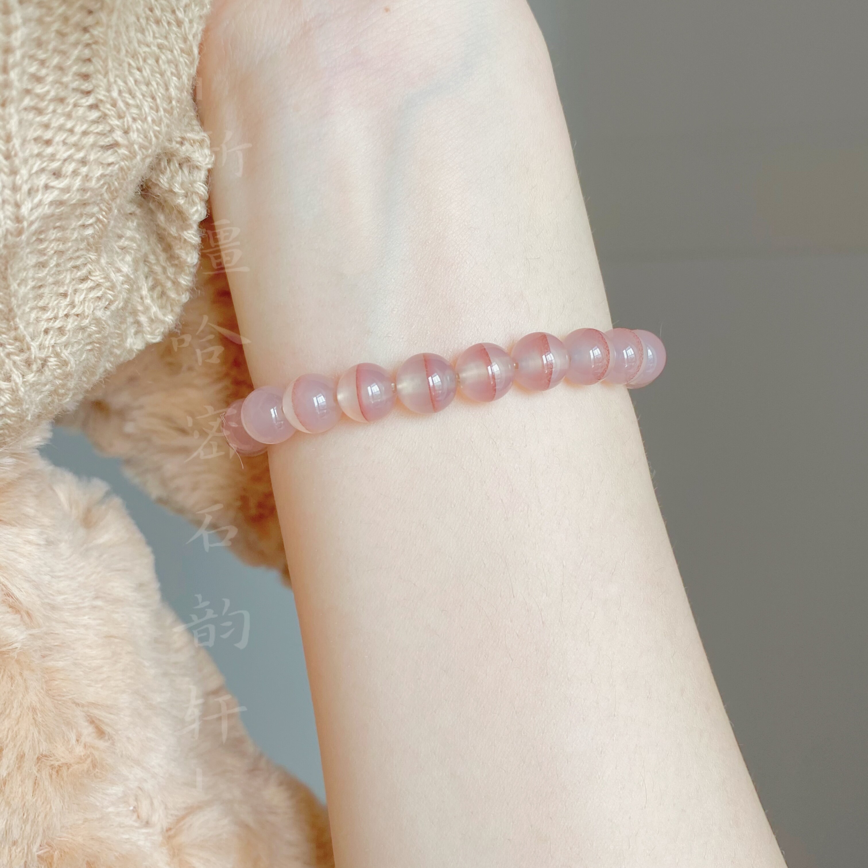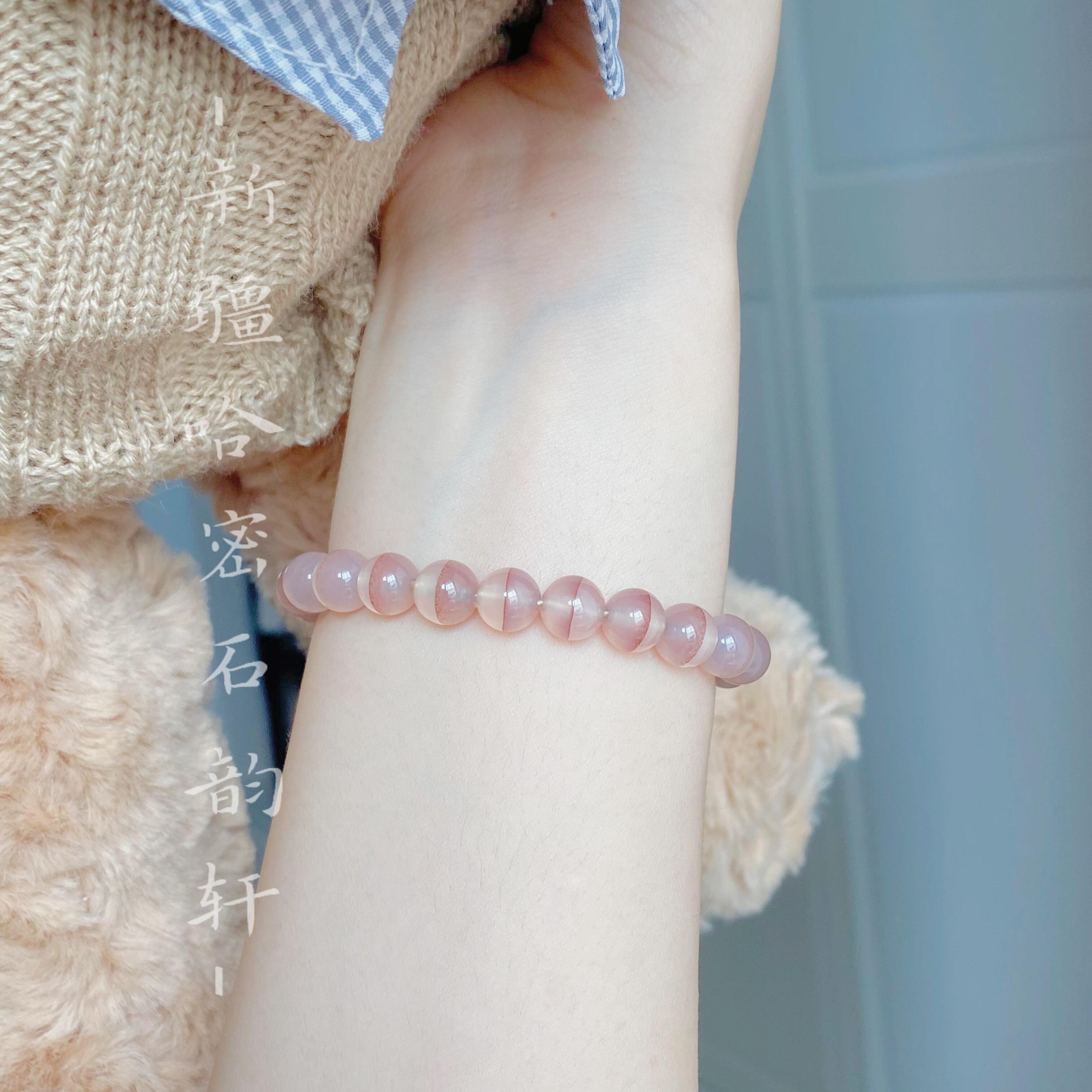 📚 一线天·新疆纯天然玛瑙手串天珠药师冰透粉紫新中式旗袍新中式
