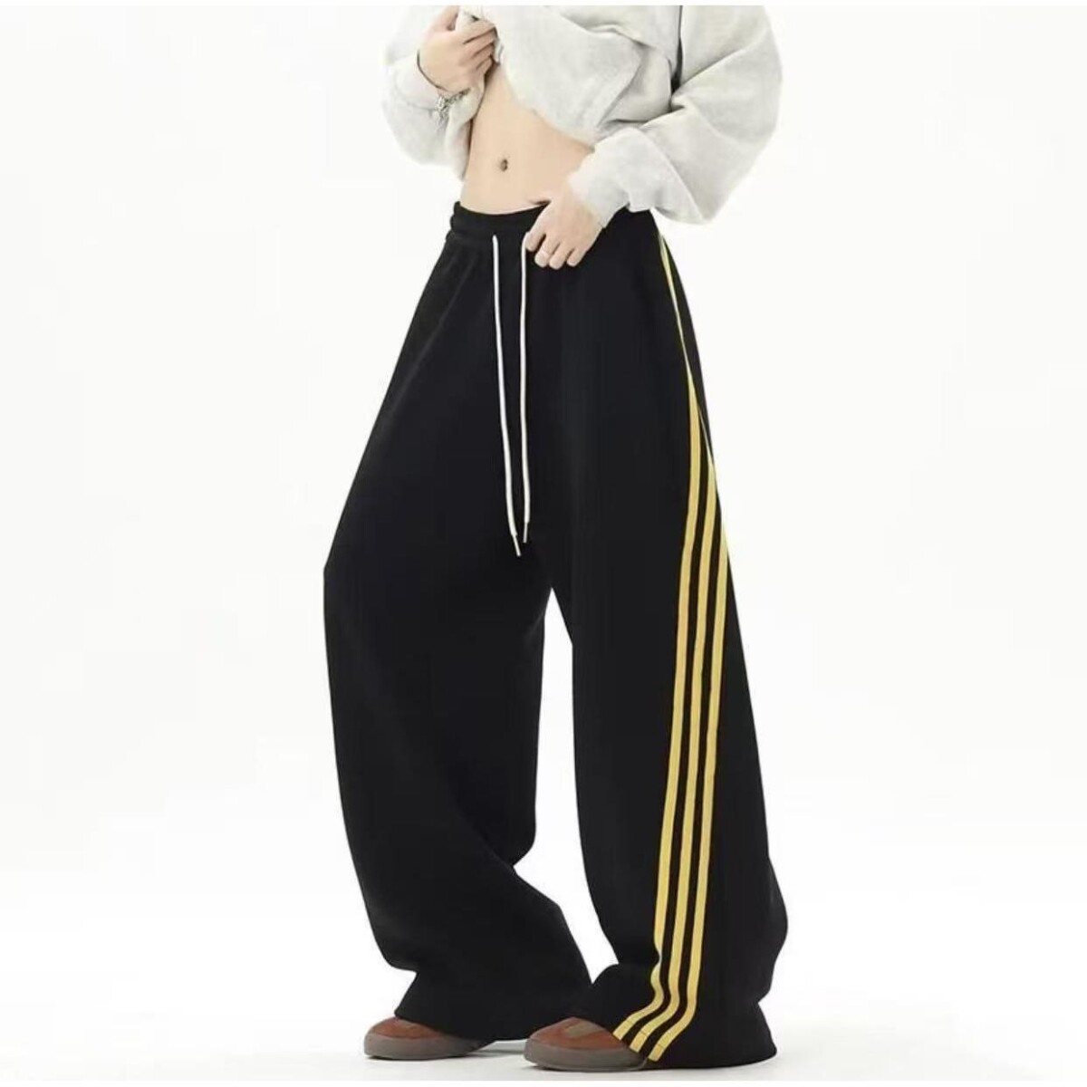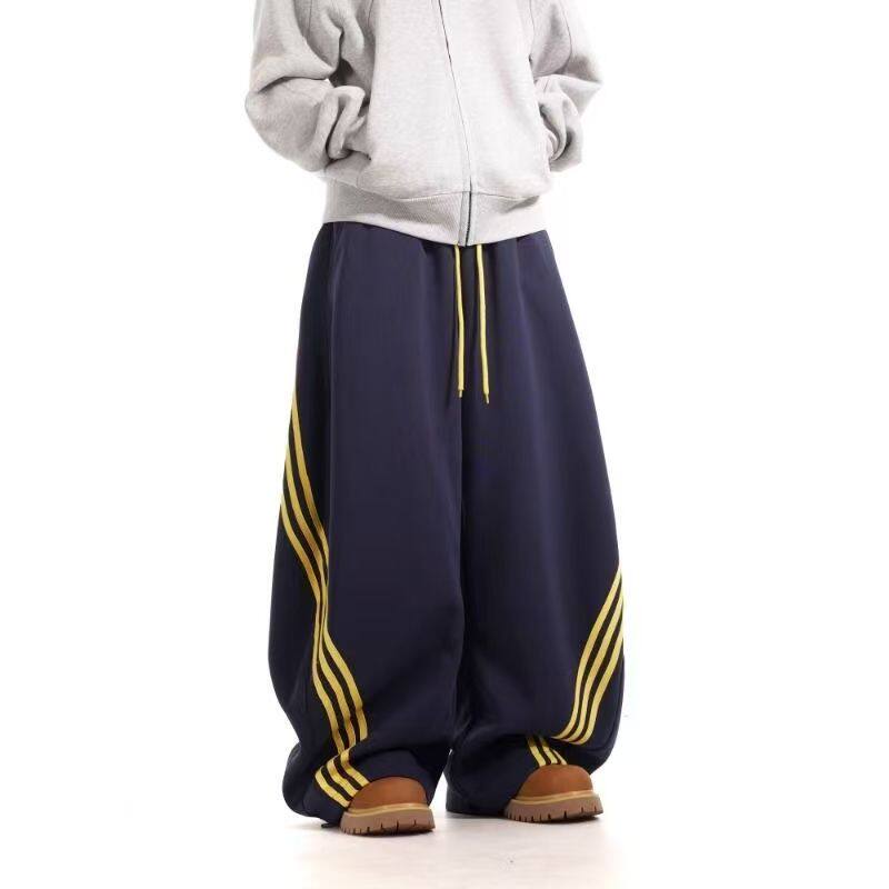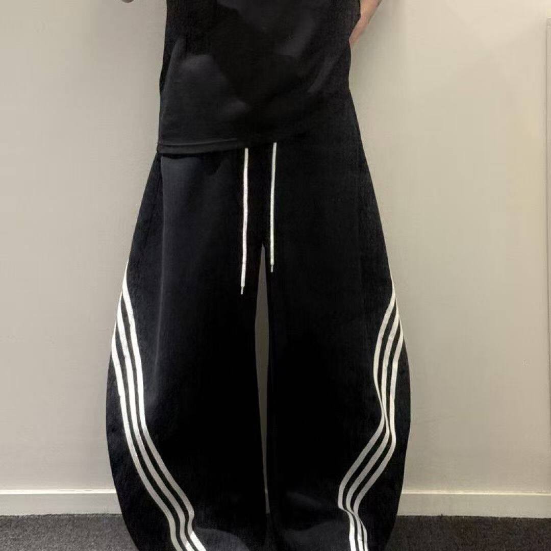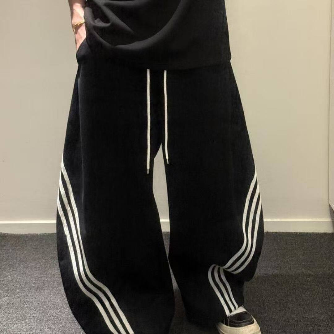 📚 美式复古三条杠弯刀卫裤男款宽松百搭垂感街舞阔腿休闲裤子2026