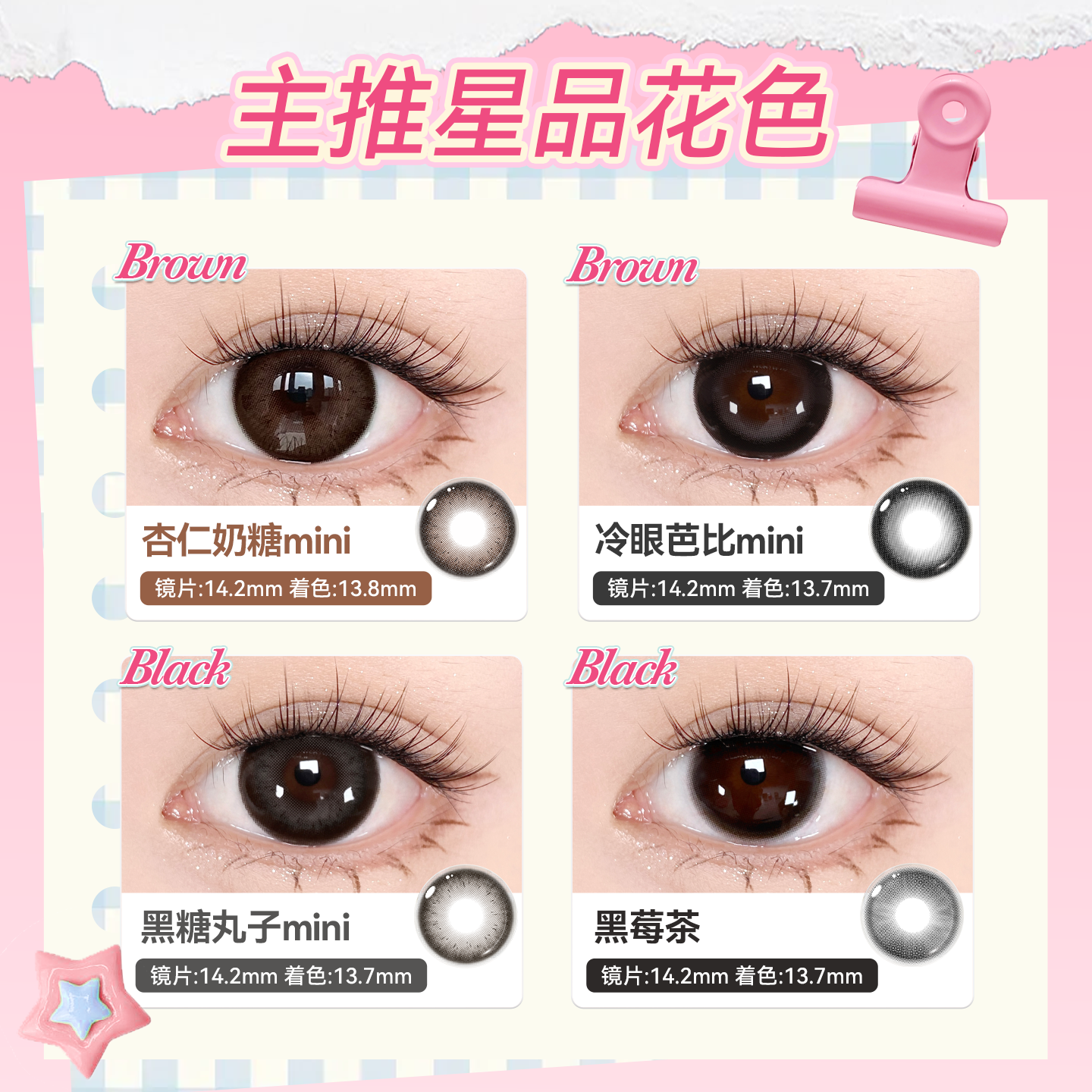 📚 伊娃爱美瞳大眼萌mini日抛大小直径杏仁奶糖婚礼隐形眼镜次抛10片
