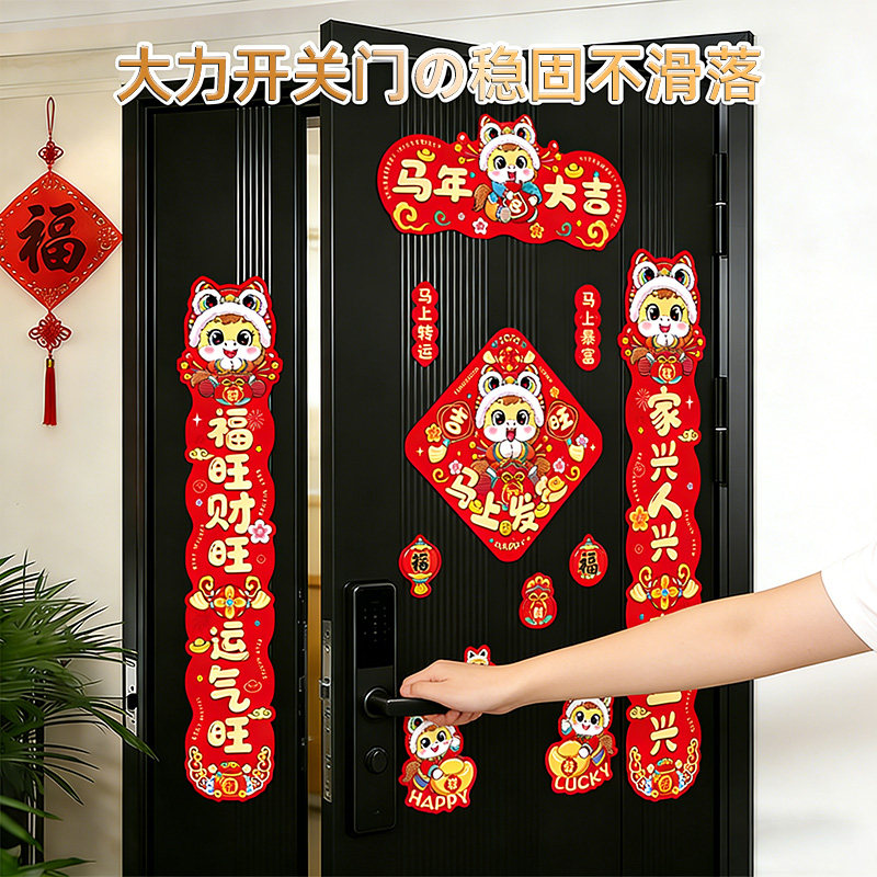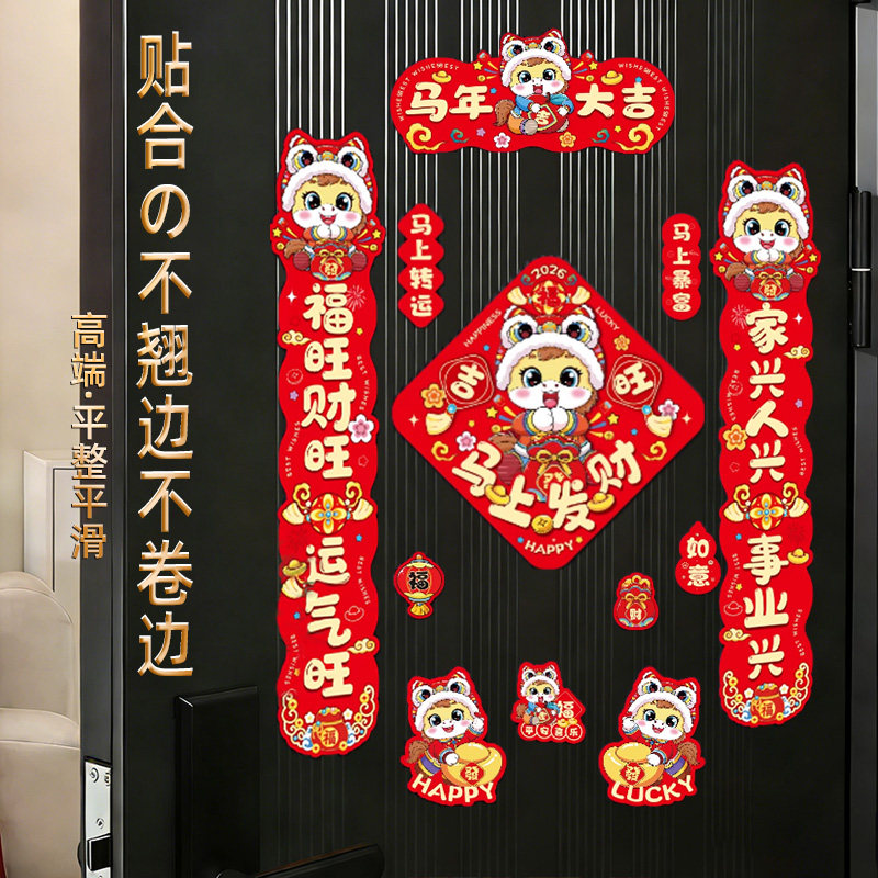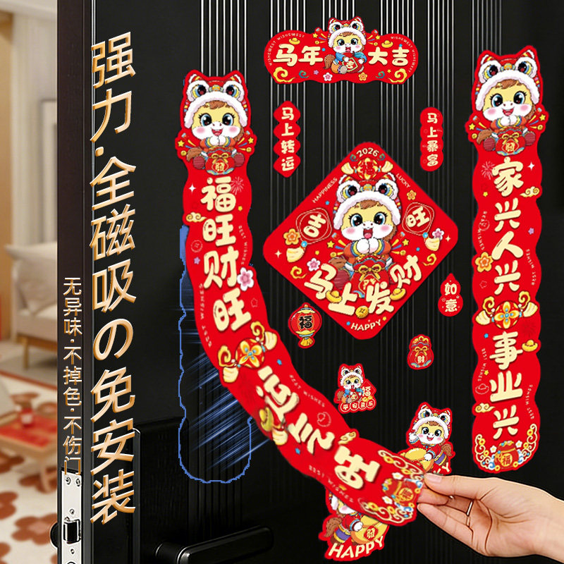📚 强力全磁吸对联2026年新年马年对联春联高档刺绣对联毛绒磁吸对联