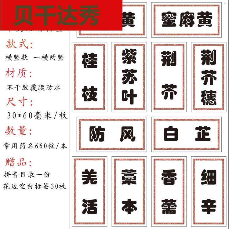 📚 中药柜药名标签不干胶贴纸名称草药药橱标识药谱药材中医斗谱贴纸药材名称标签贴纸药材分类贴定制