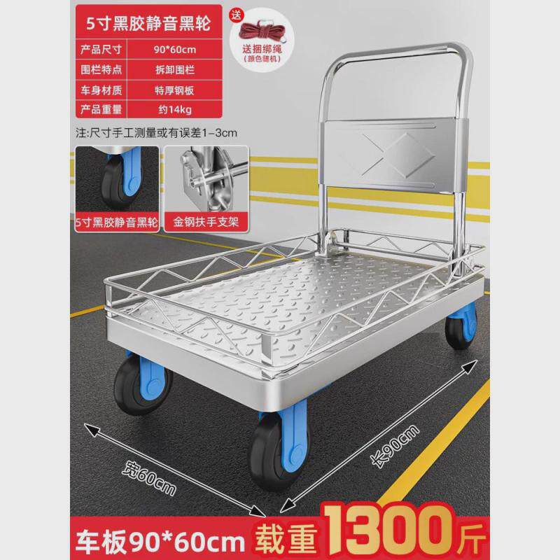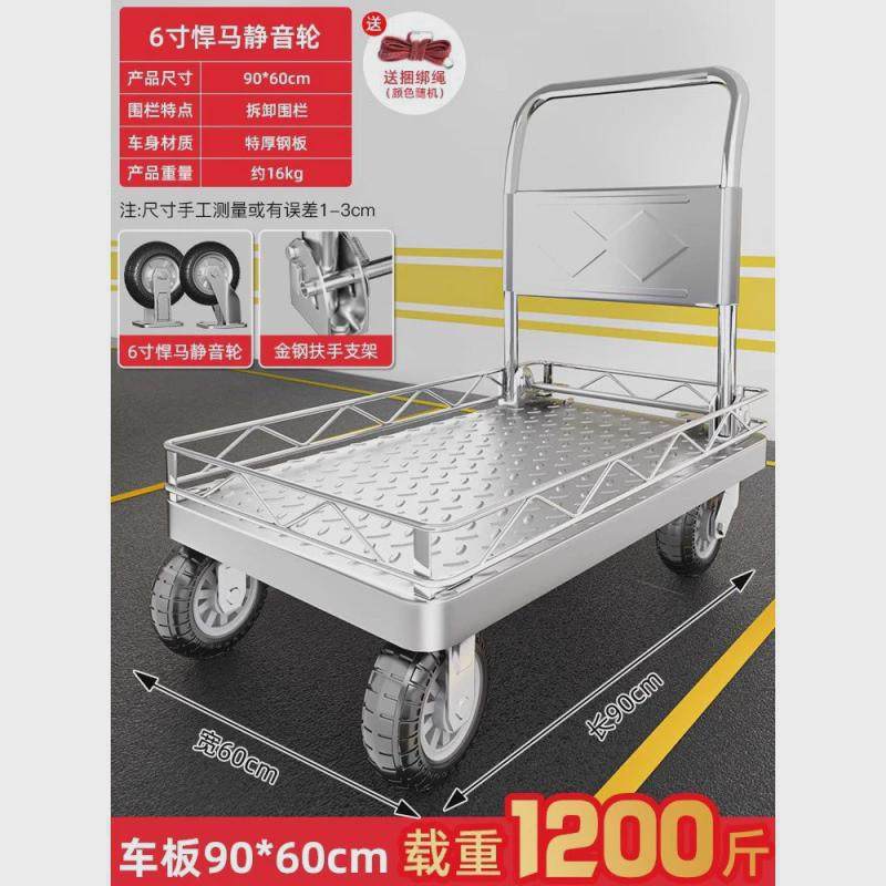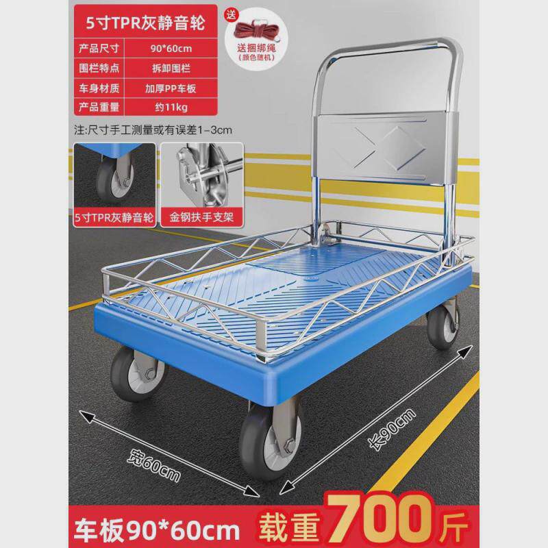 📚 手推车带围栏平板车搬运车带护栏小推车拉货家用小拉车可折叠拖车