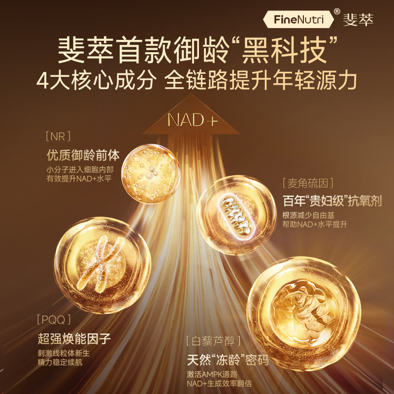📚 FineNutri斐萃NAD+细胞焕活能量瓶专利nr红宝石油提代谢时光管理