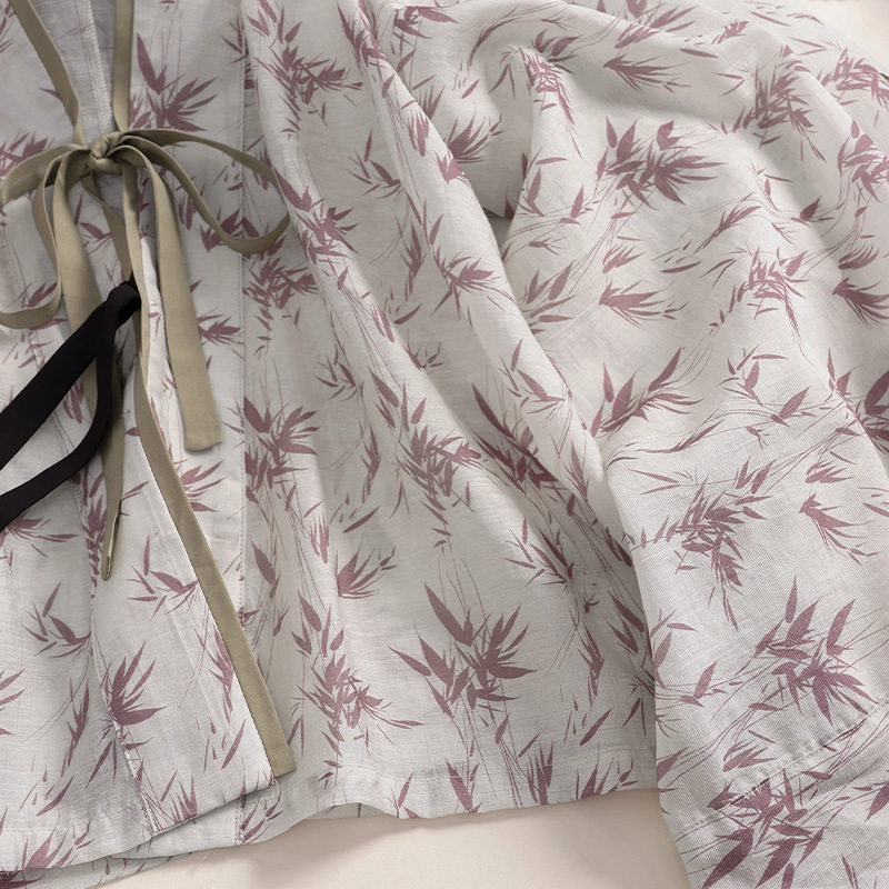 📚 2026幂同款魏晋北朝新中式竹节印花汉服轻薄宽松褶衣长袖衬衫