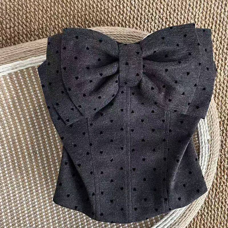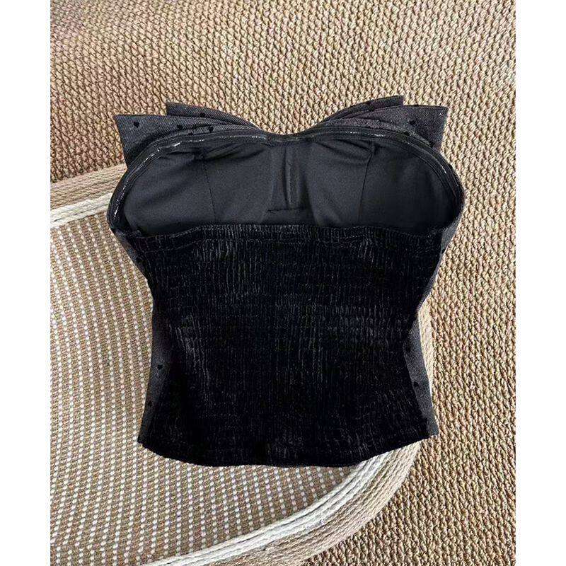 📚 法式复古蝴蝶结抹胸胸垫女外穿设计感小众修身显瘦上衣甜辣妹纯欲