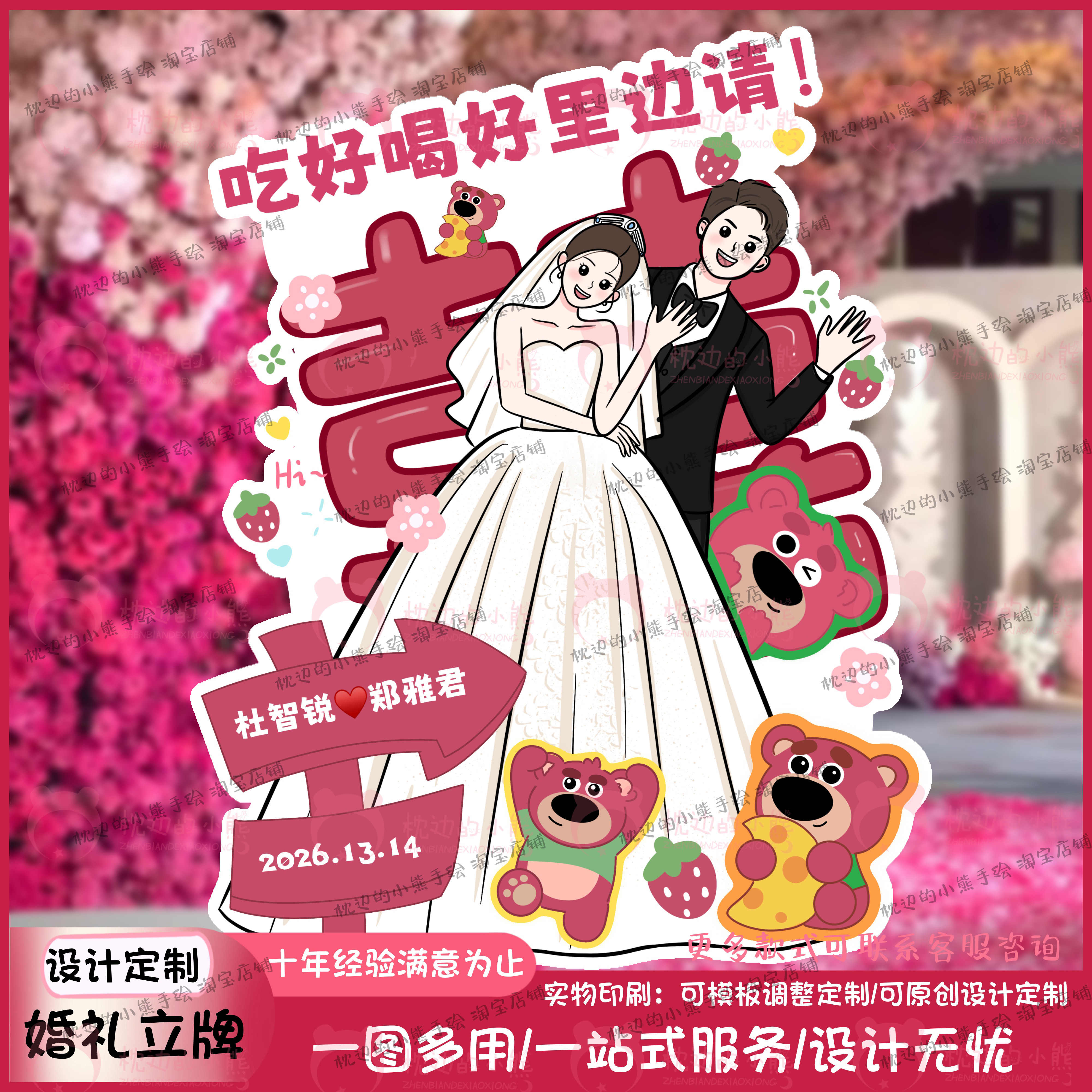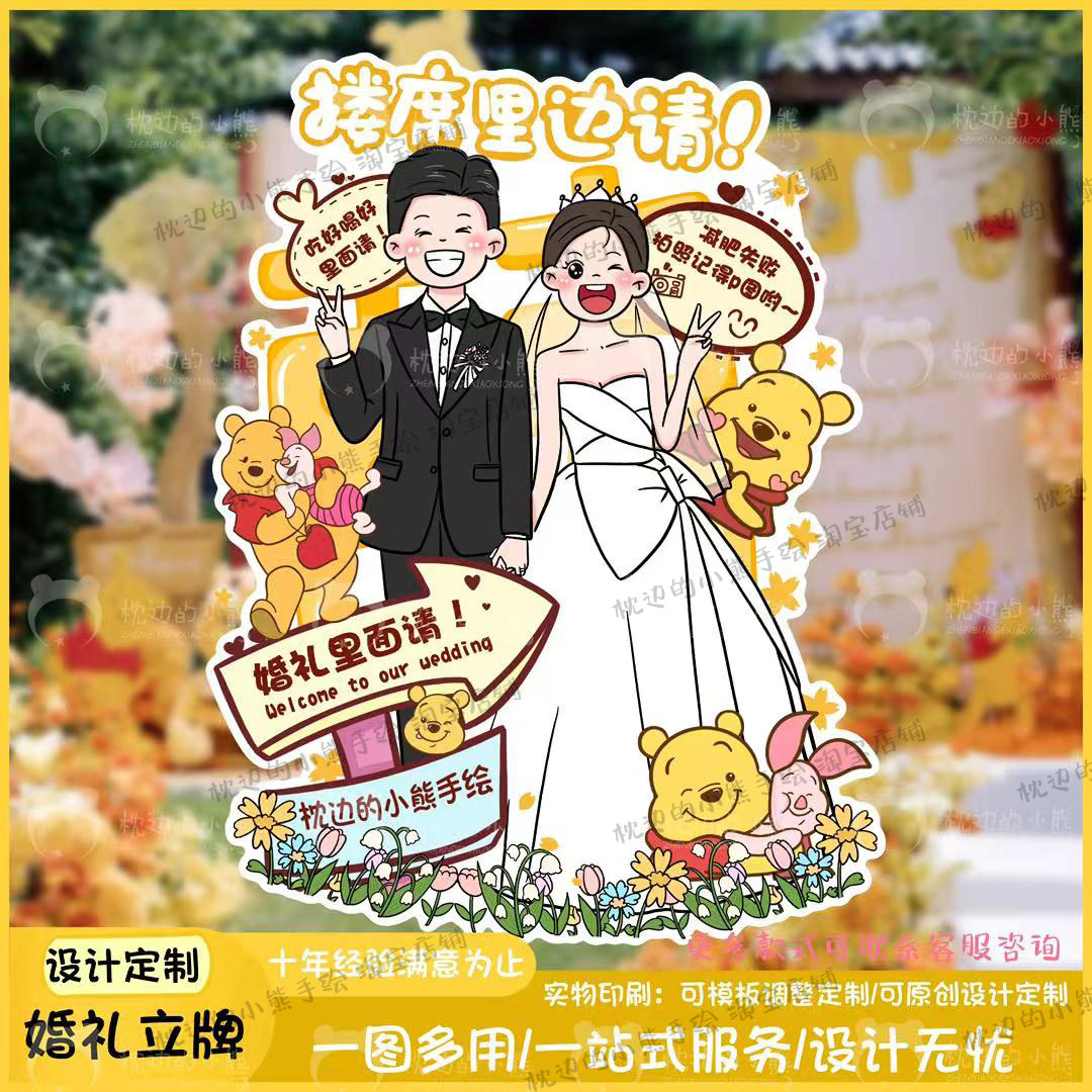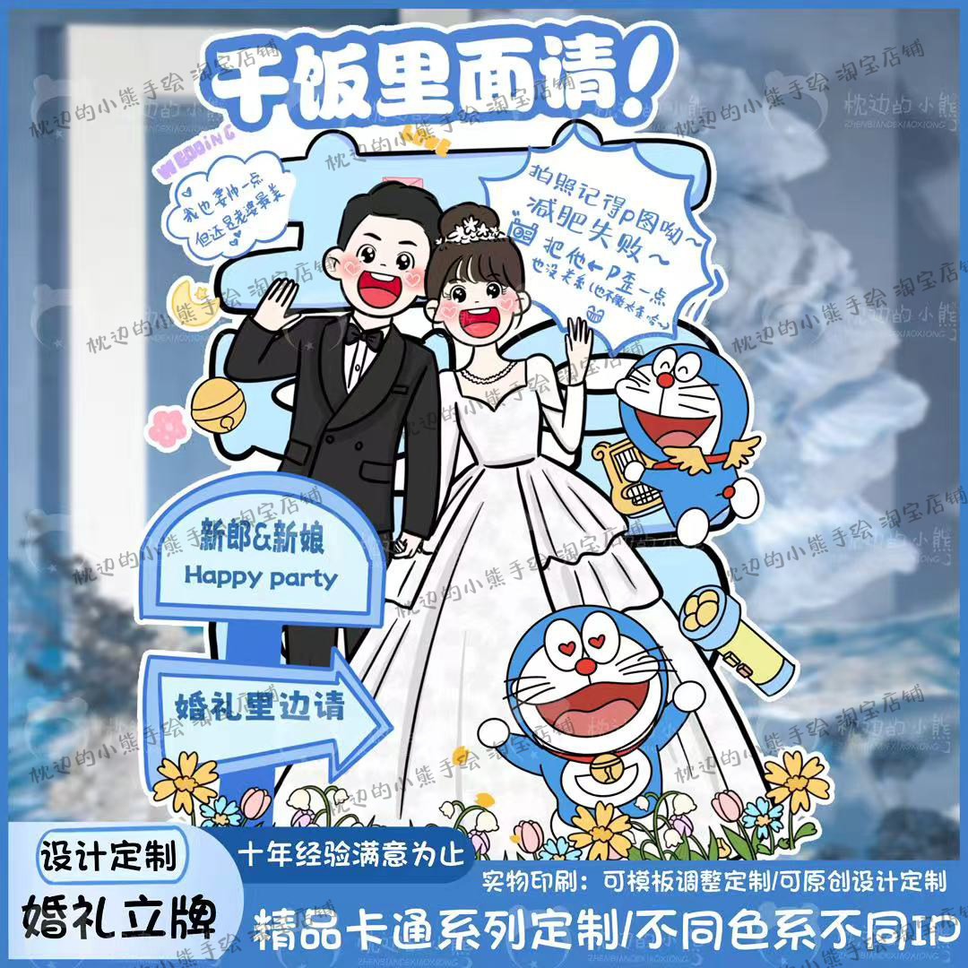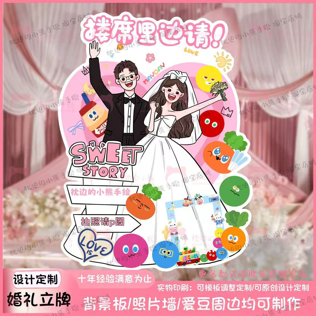 📚 婚礼结婚布置装饰人形立牌手绘漫画卡通迎宾牌指示牌订婚kt板定制