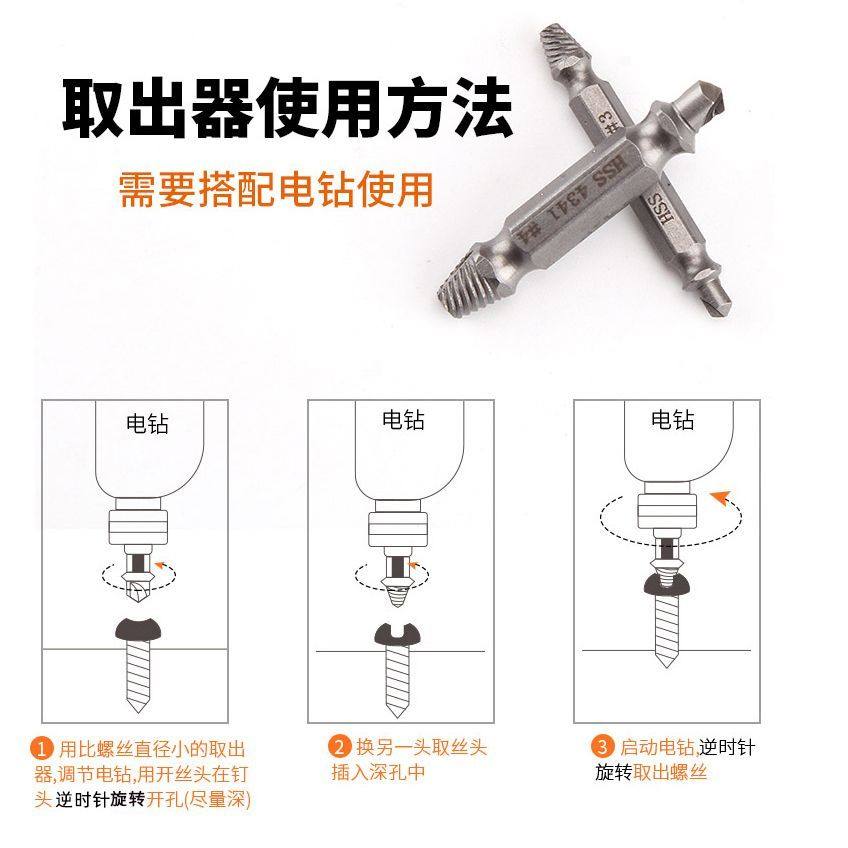 📚 断丝取出器螺丝断头取出取断滑丝滑牙锥丝攻取丝器生锈滑丝倒丝器