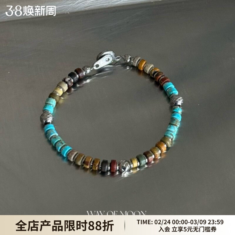 📚 WAY OF MOON原创手工串珠红蓝松石手链女小众日常复古精致手串女