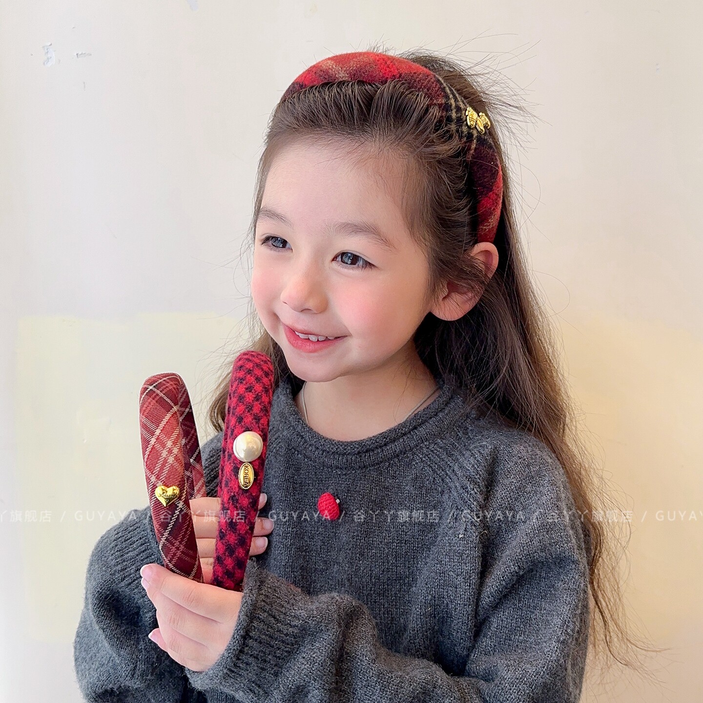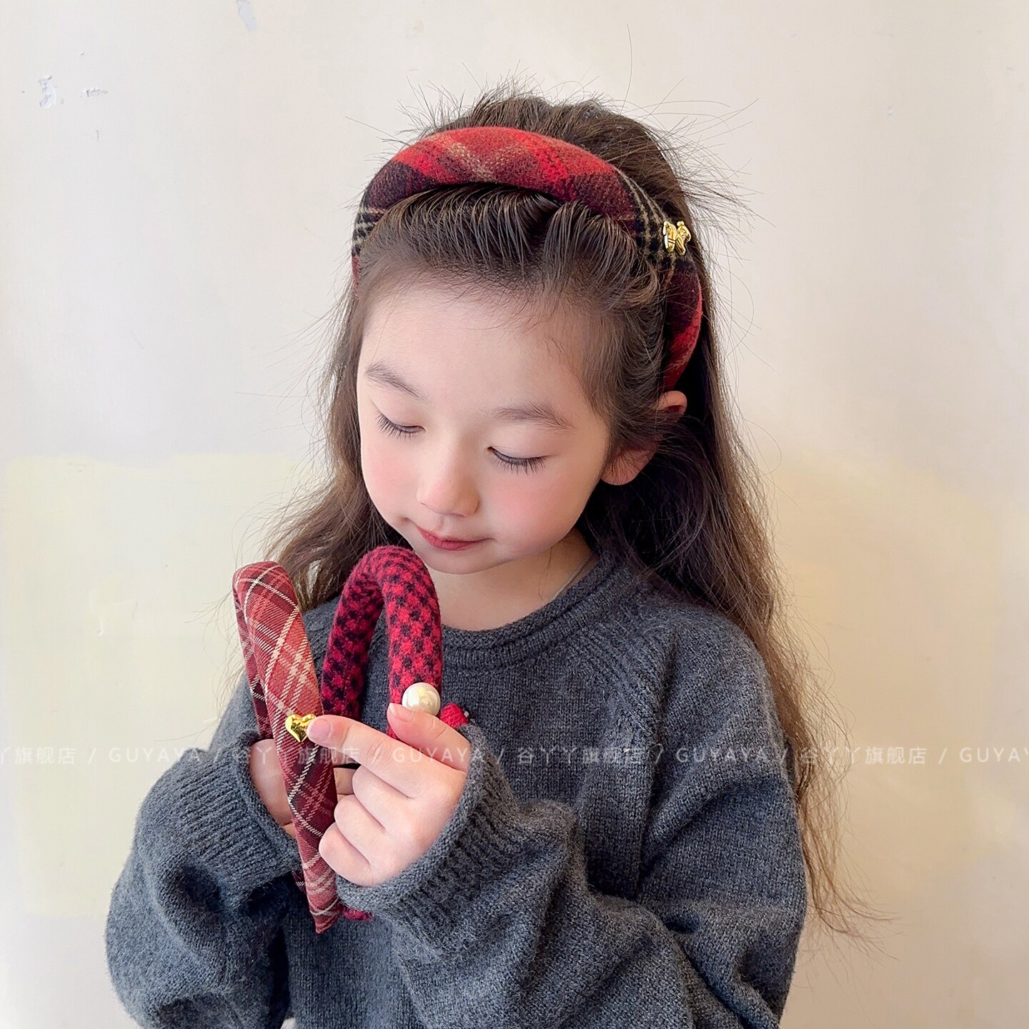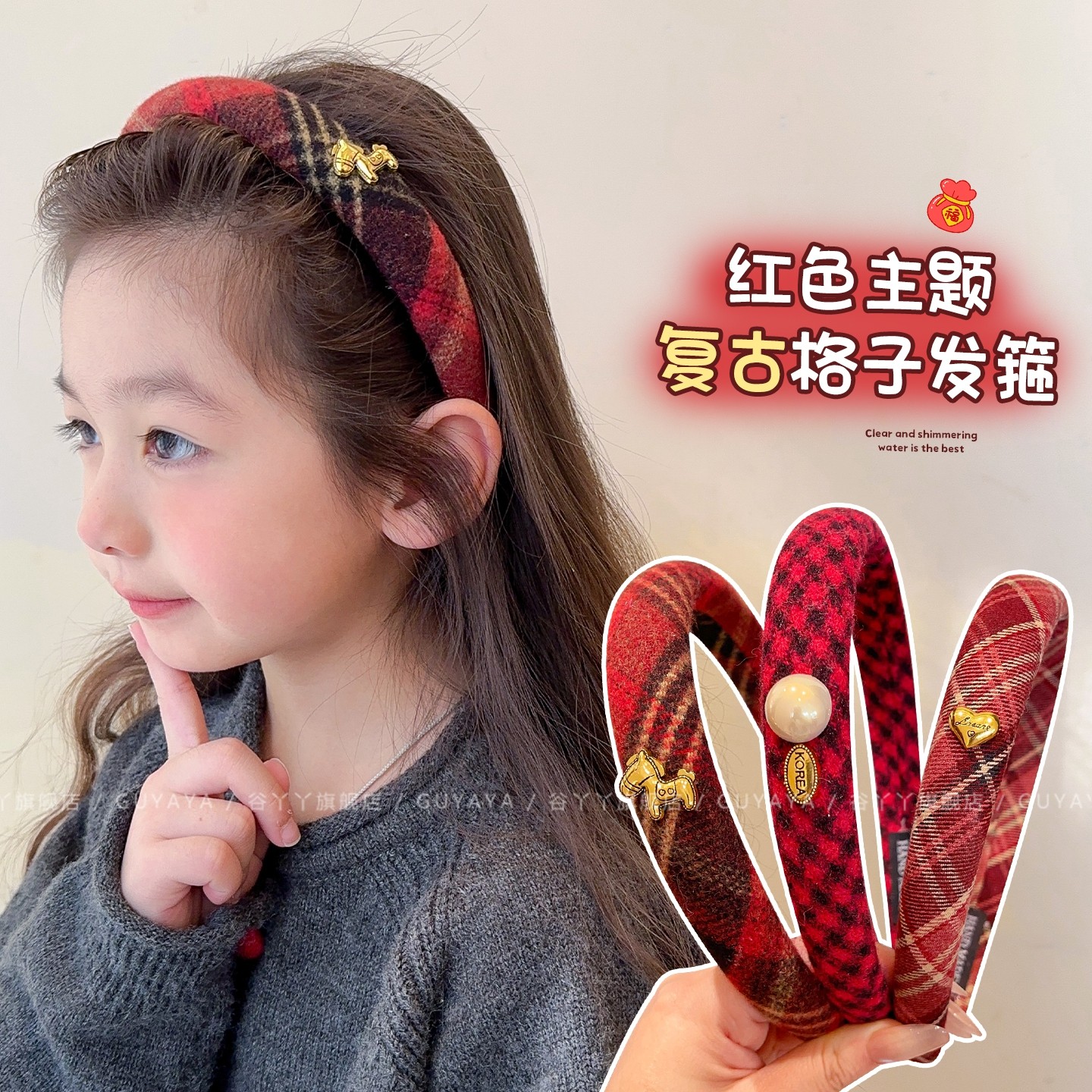 📚 儿童红色系格纹发箍女童2026新款韩版头箍女孩拜年喜庆氛围感发饰