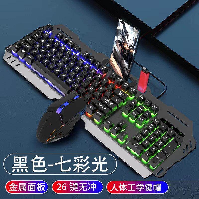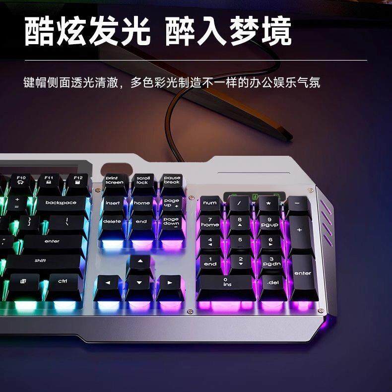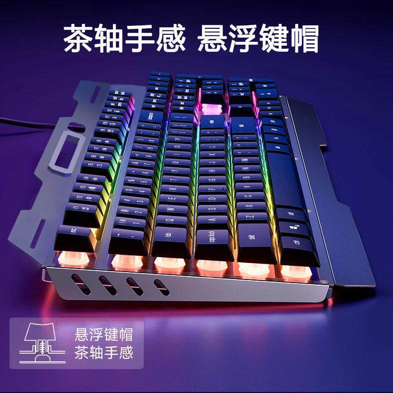 📚 静音手感有线键盘滑鼠套组发光电脑台式USB炫酷背光悬浮按键金属