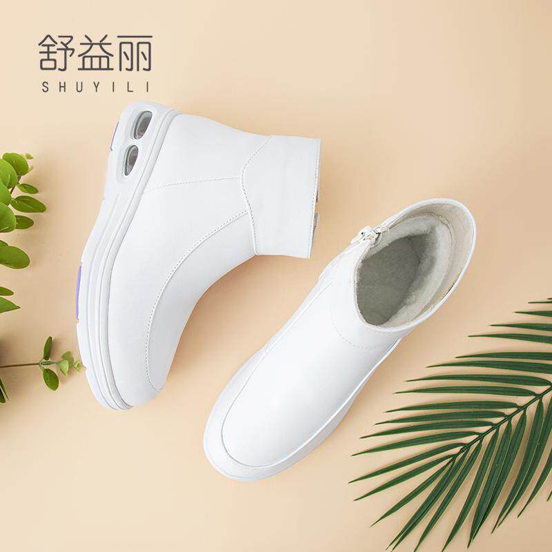 📚 舒益丽冬季加绒护士鞋女软底透气不累脚防臭防滑厚底增高白色气垫