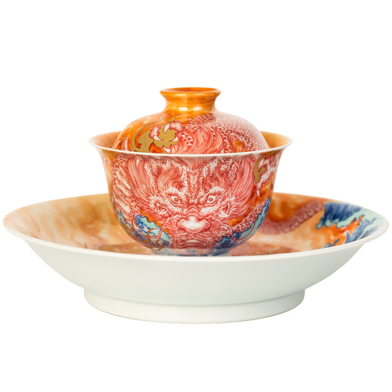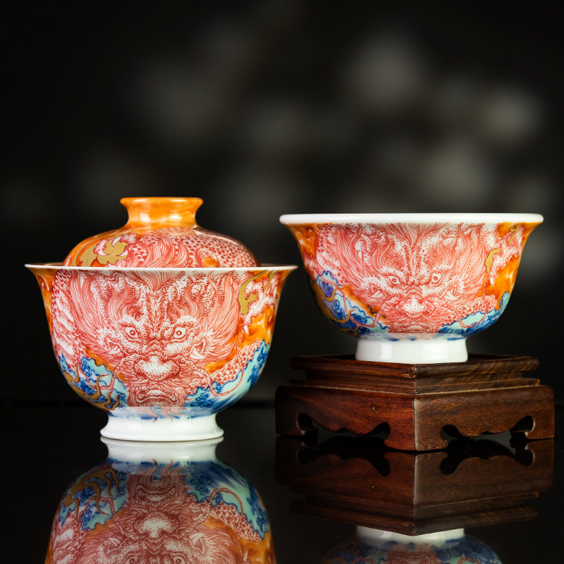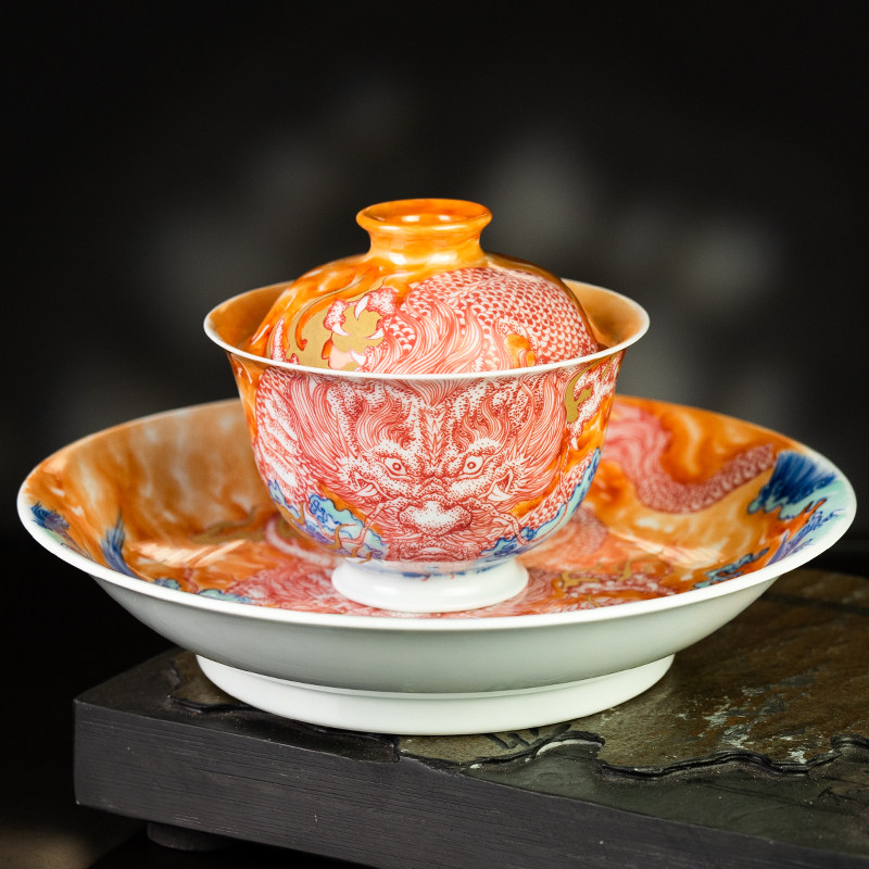 📚 圣山釉下矾红霸龙潮水陶瓷盖碗景德镇陶瓷茶具茶杯泡茶盖碗