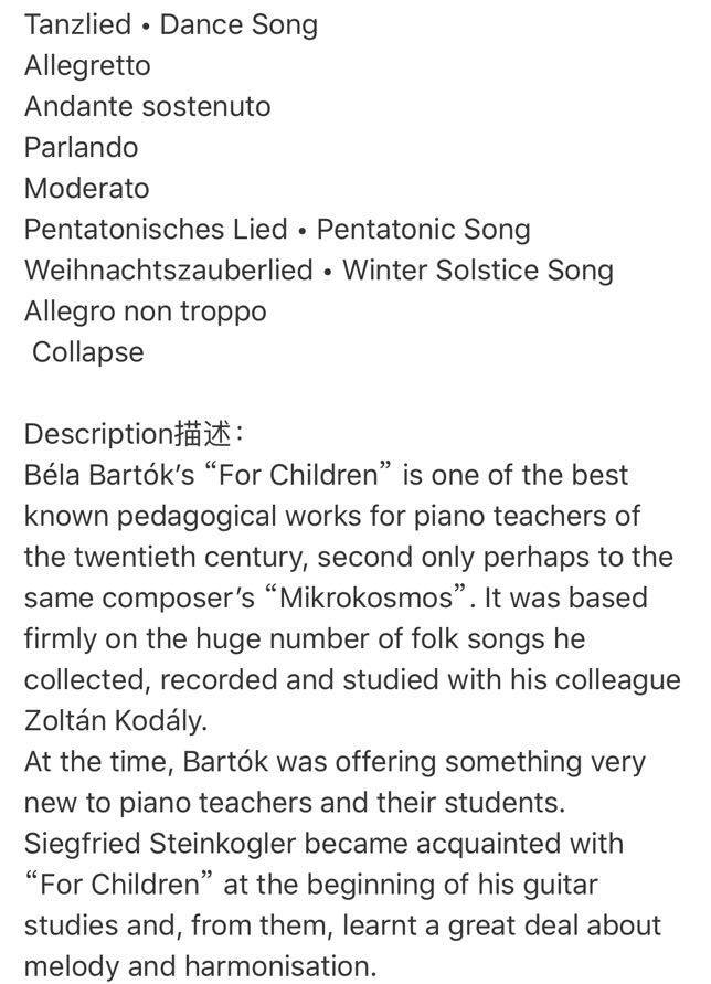 📚 巴托克 献给孩子们 两把吉他 维也纳UE原版乐谱书 Bela Bartok For Children for two guitars UE37209