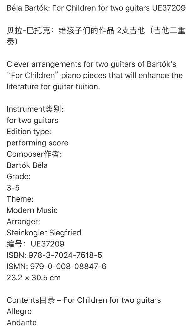 29¥ tG-#22>lD aL7iUkEdLX3¥ https://m.tb.cn/h.7utuIYz 巴托克 献给孩子们 两把吉他 维也纳UE原版乐谱书 Bela Bartok For Children for two guitars UE37209 --------------------- 【原售价】169.9元 【现售价】169.9元。