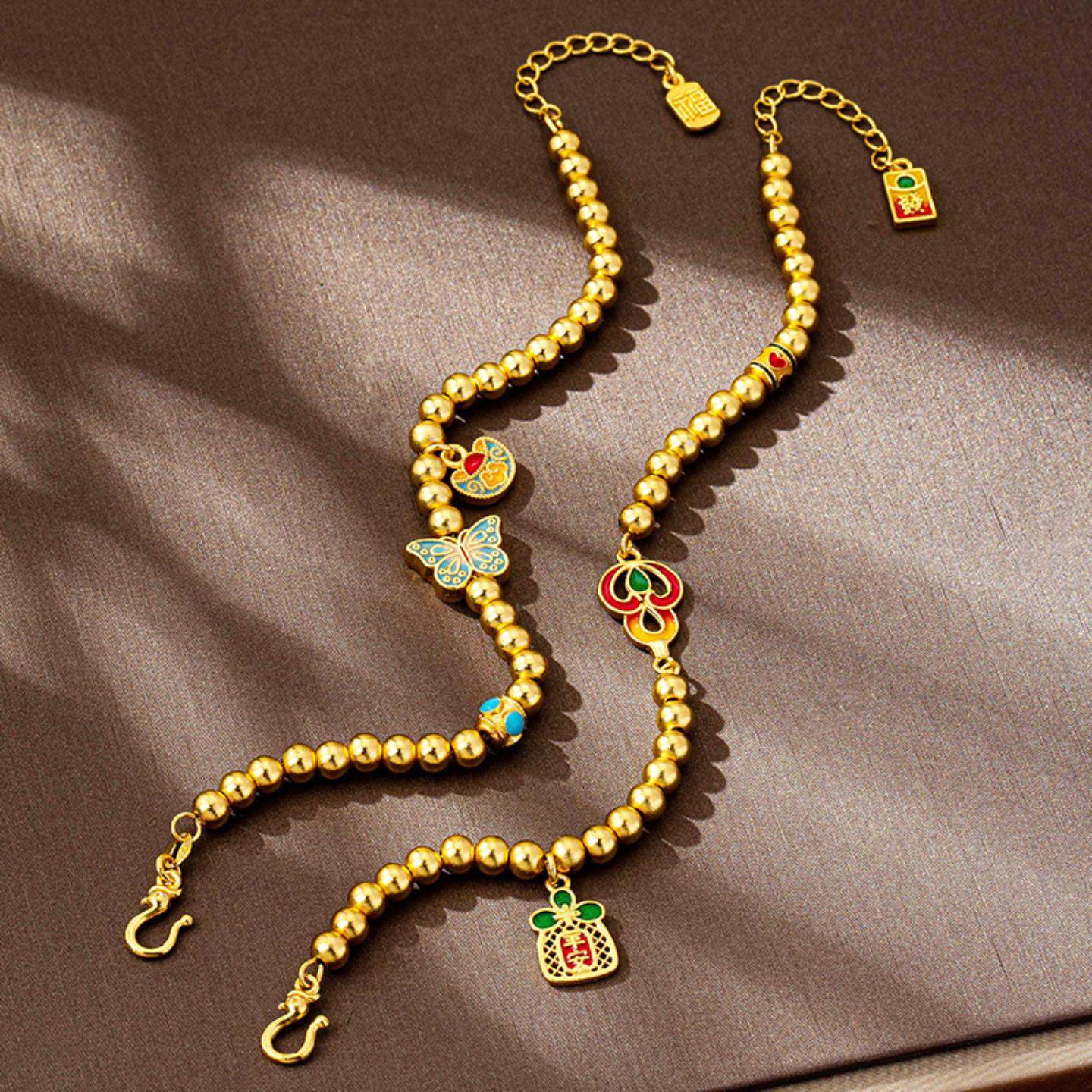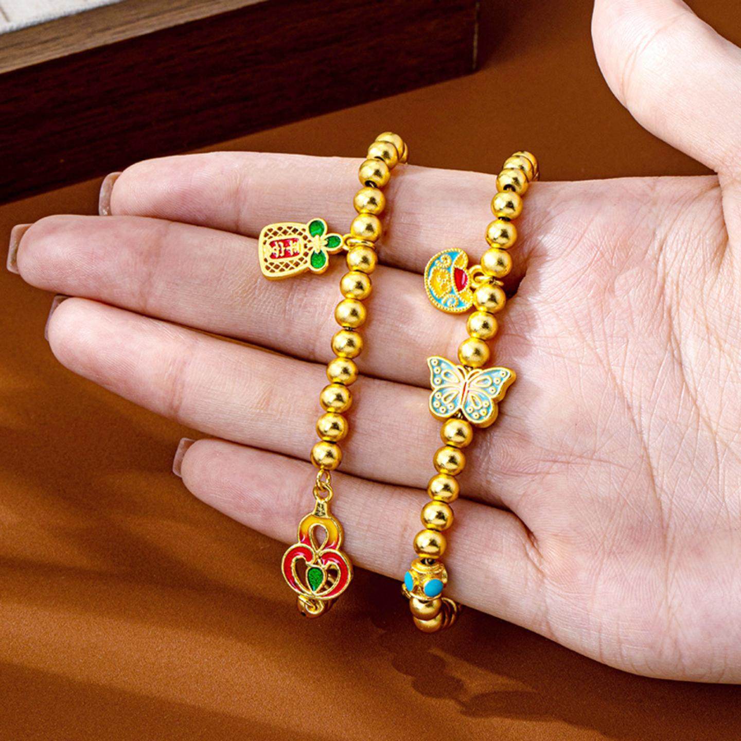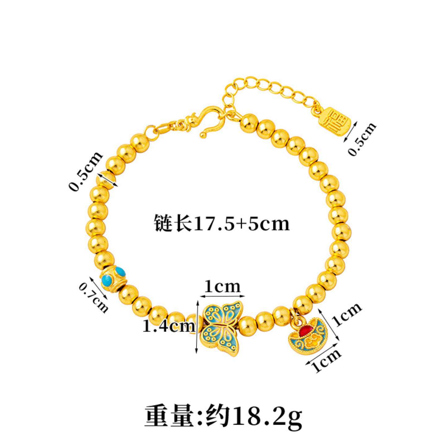 📚 复古越南沙金手串宫廷风滴油蝴蝶元宝平安牌手链女高级感饰品直销