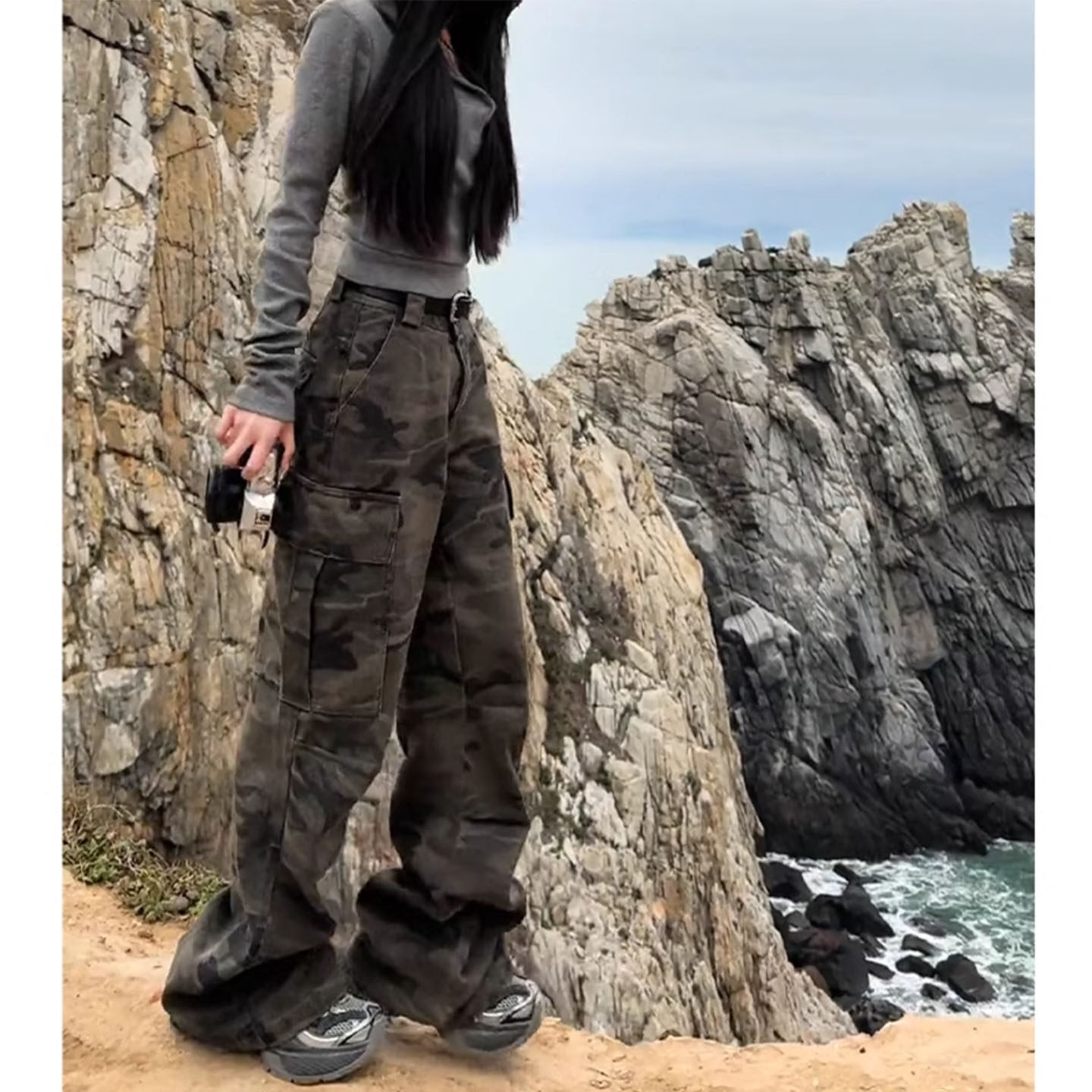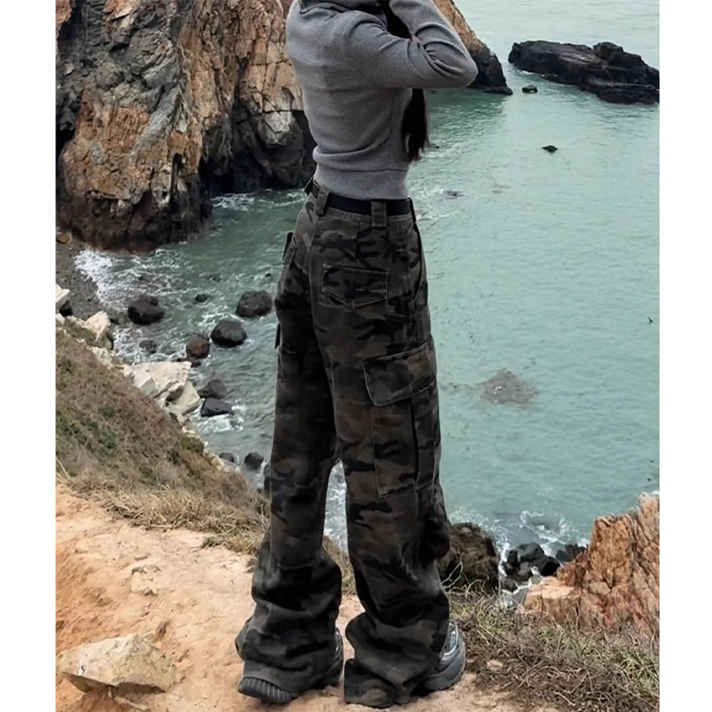 📚 175高个子超长美式复古迷彩工装牛仔裤女2025年秋季宽松拖地裤子