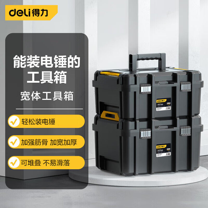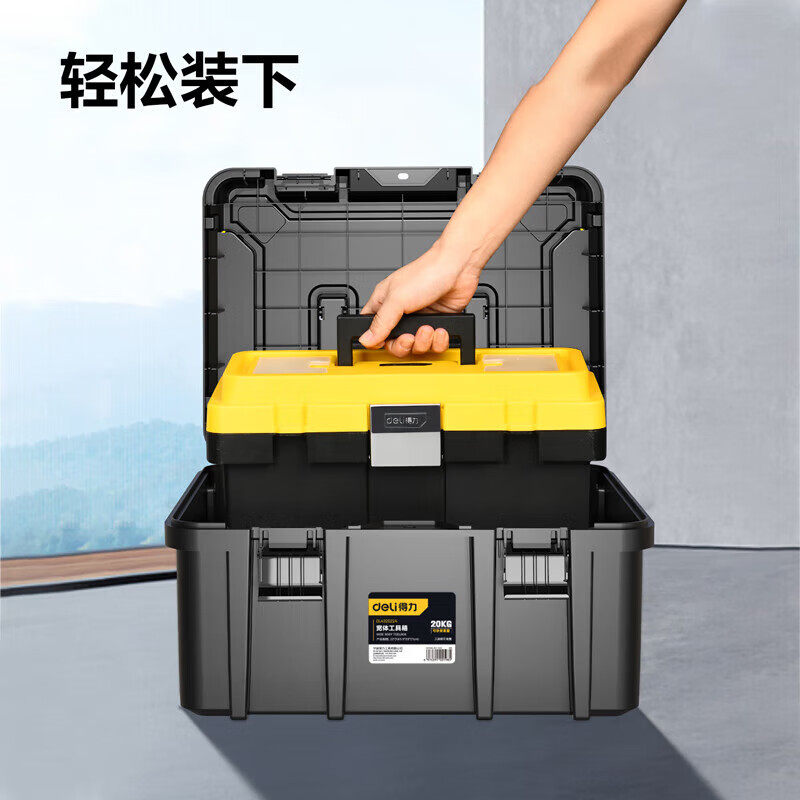 📚 得力加强型宽体工具箱空箱加高塑料收纳箱维修家用五金收纳盒