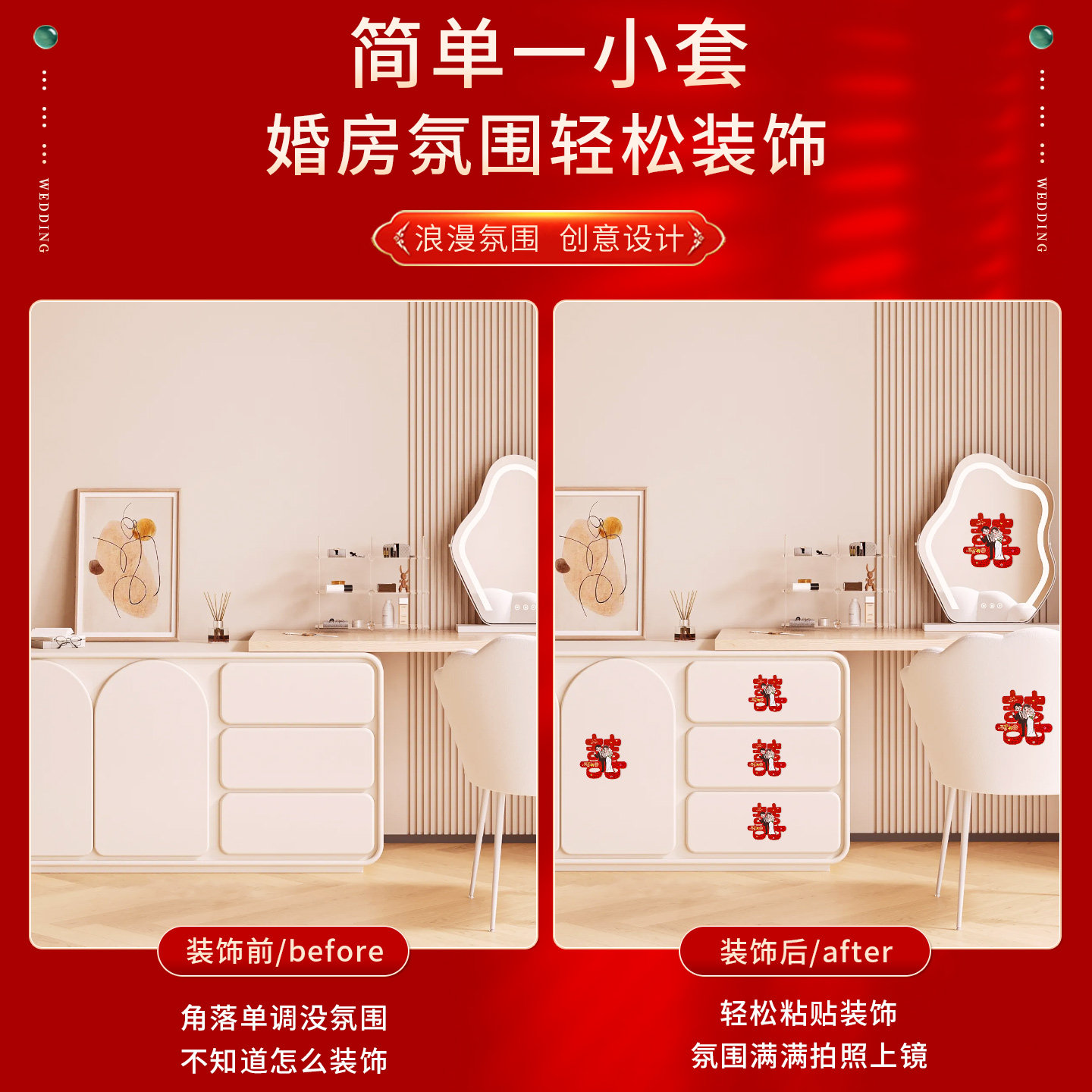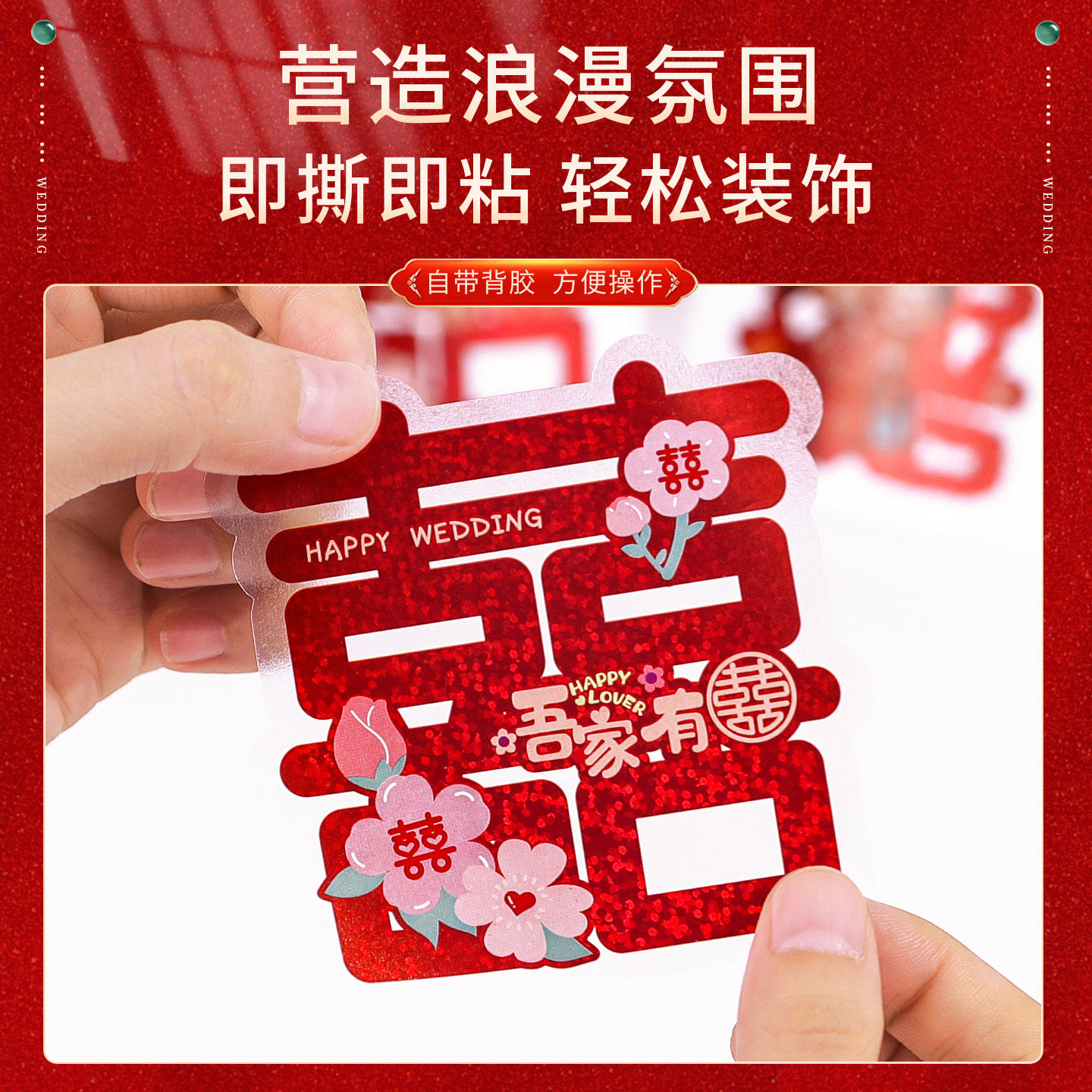 📚 结婚小喜字贴婚房布置女方出嫁闺房衣柜楼梯台阶拉花囍字贴纸装饰