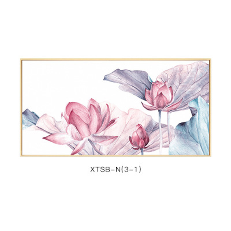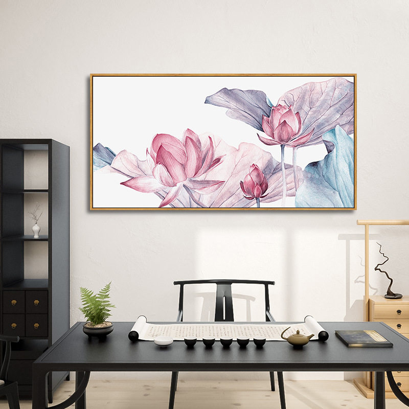 📚 横向中式淡雅花卉有框客厅餐厅卧室装饰画现代简约植物挂画新中式
