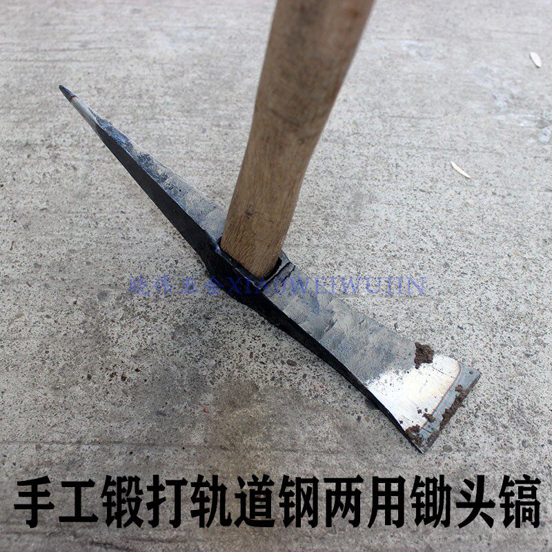 📚 手工锻打一体十字镐轨道钢两用锄头镐子农用镐头木柄镐子户外工具