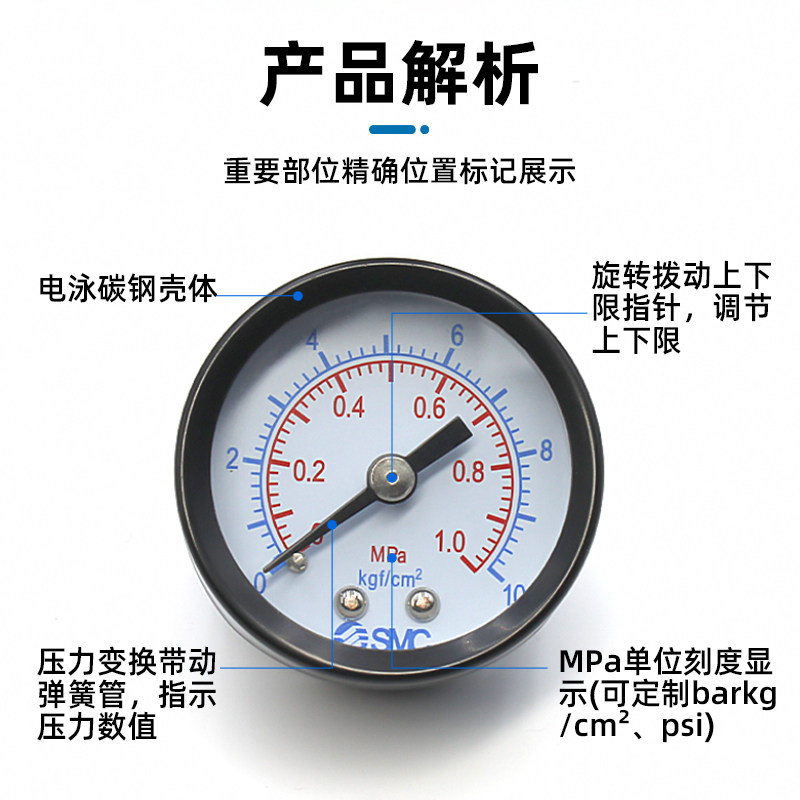 📚 SMC压力表0.4MPa真空负压10公斤G36-10-01/GZ43-K-01小气压表GP46