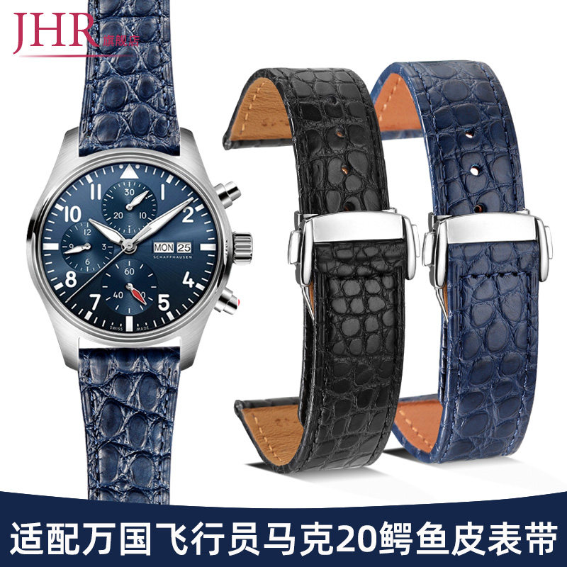 📚 适配IWC万国手表带鳄鱼皮男飞行员葡萄牙计时柏涛菲诺真皮带22mm