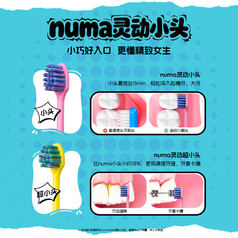 📚 惠百施numa灵动超小头深入牙缝清洁多巴胺软毛牙刷成人迷你细节刷
