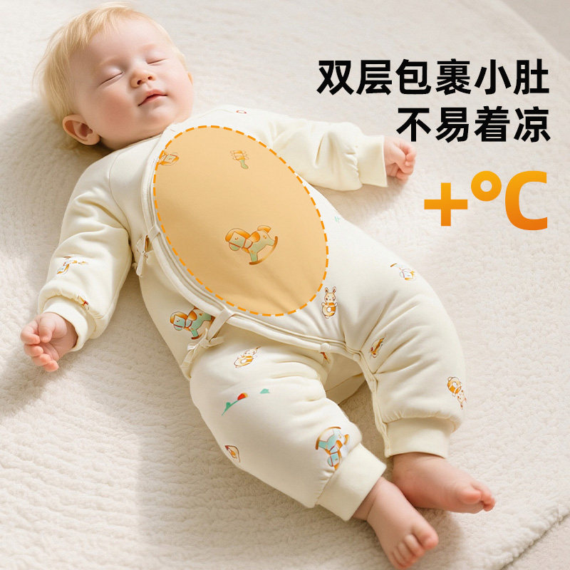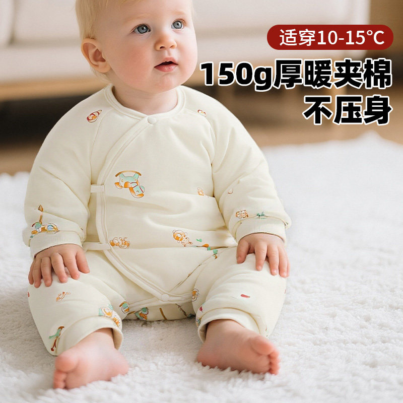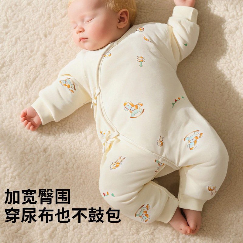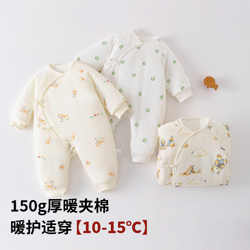 📚 哇哇婴儿连体衣夹棉保暖加厚款冬季新生儿0到3个月宝宝衣服冬装