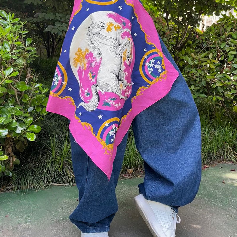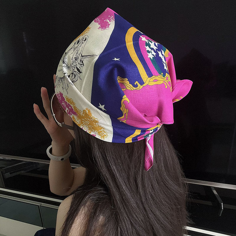 📚 滚烫时光美式纯棉方巾薄款丝巾辣妹嘻哈街头甜酷头巾粉色包头发饰