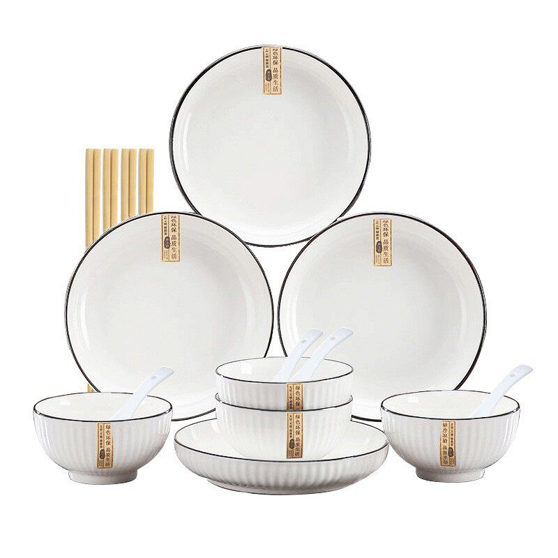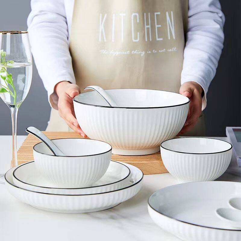 📚 日式山田碗盘套装碗筷吃饭碗面碗汤碗家用日式高颜值陶瓷餐具