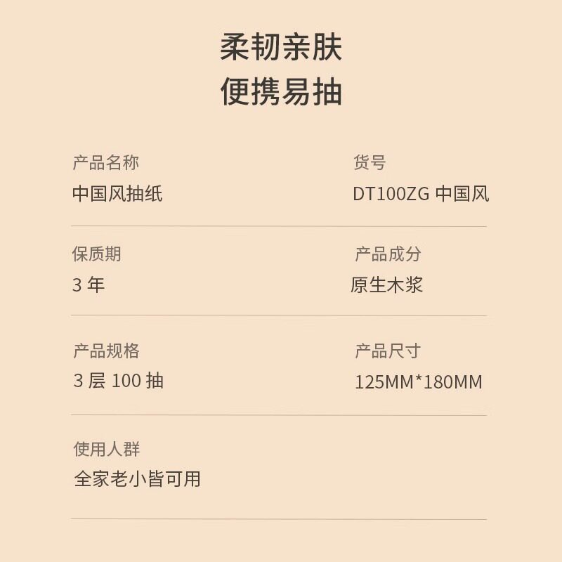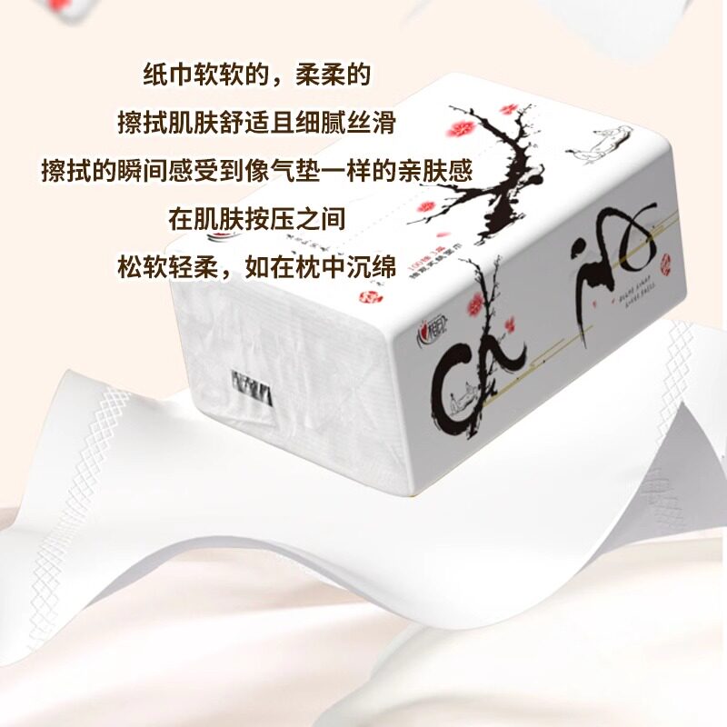 📚 心相印中国风抽纸餐巾纸面巾纸卫生纸柔肤3层100抽家用纸巾