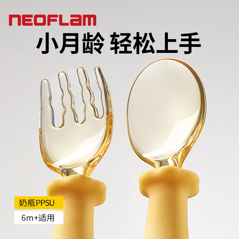 📚 韩国Neoflam辅食勺子宝宝自主进食学吃饭训练勺子PPSU弯头叉勺
