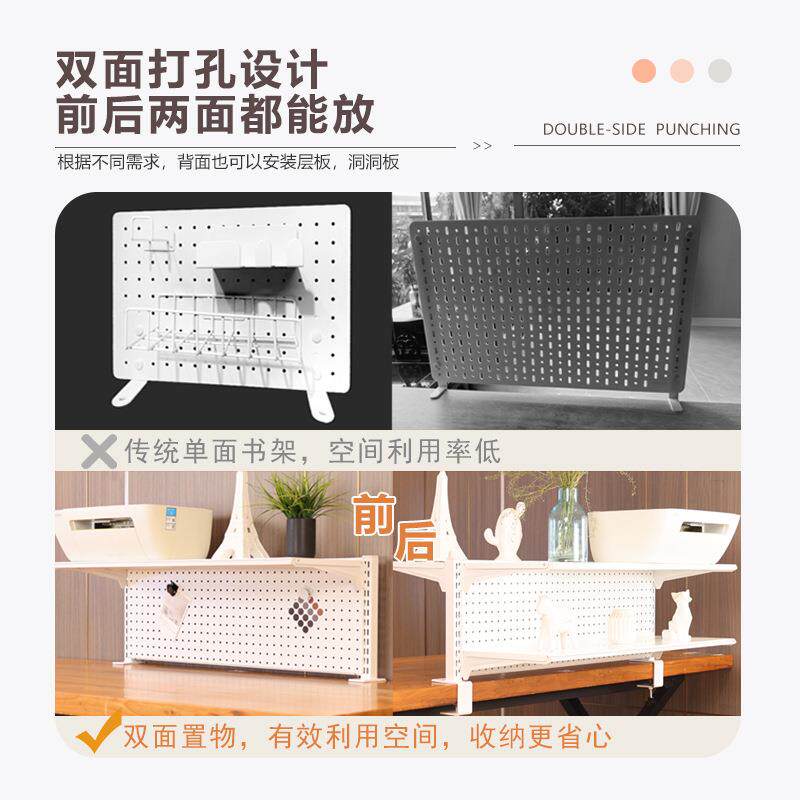 📚 铭添电竞风桌洞洞板多功能置物架桌面铁艺书架分层桌上免打孔收纳