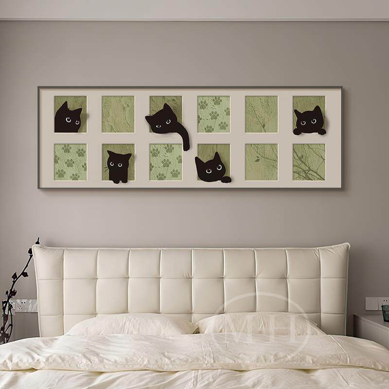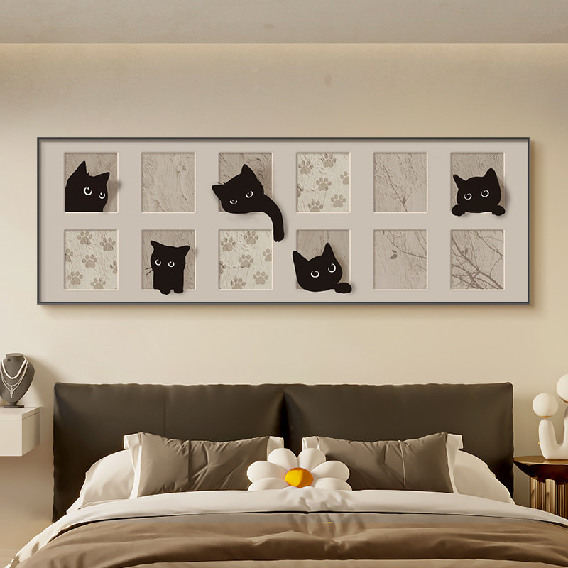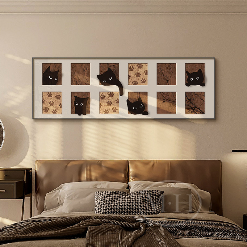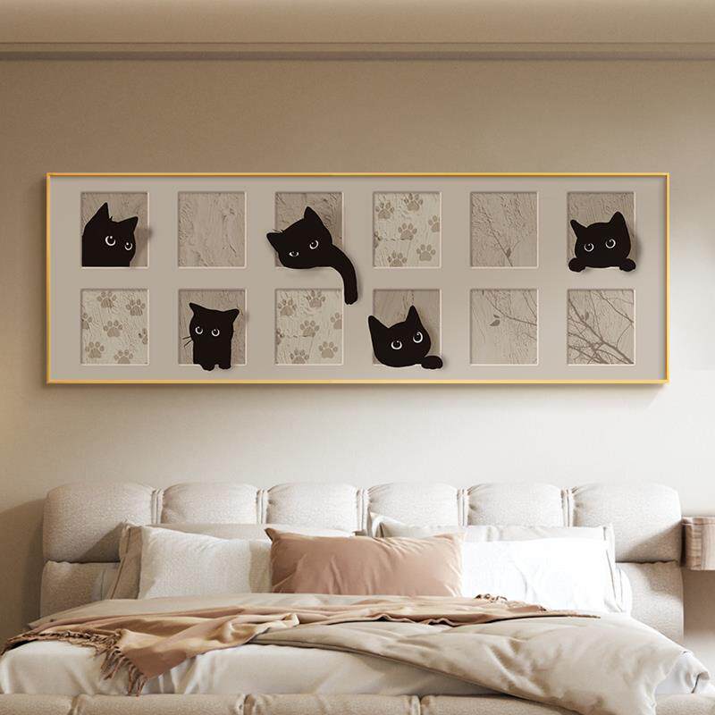 📚 网红现代意简约术卧室装饰画抽象创猫咪艺壁画日式原主床木风卧挂