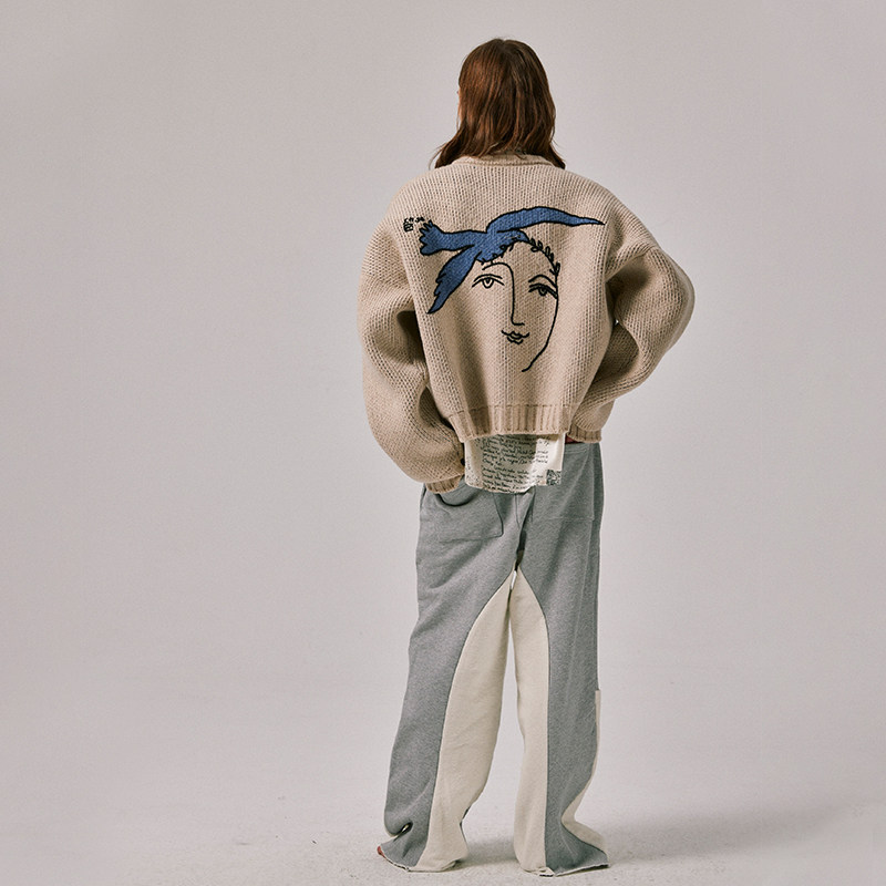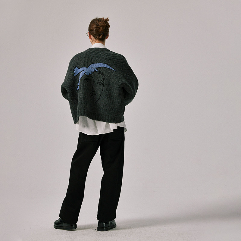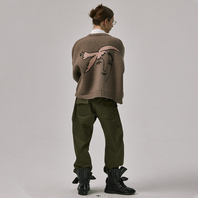 📚 Amicus Animae 油画和平鸽开衫毛衣