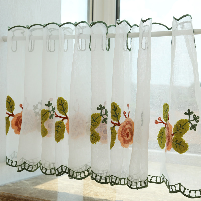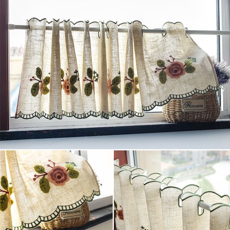 📚 棉麻半帘短帘刺绣咖啡帘成品厨房卫生间飘窗橱窗小窗帘柜帘免打孔