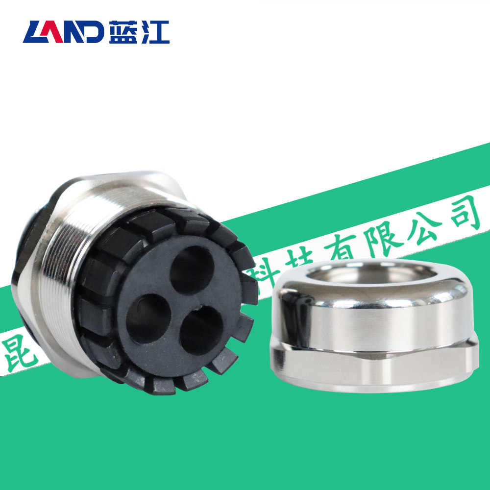 📚 蓝江LAND 三孔防爆铜镀镍防水电缆接头外螺纹多芯金属固定格兰头