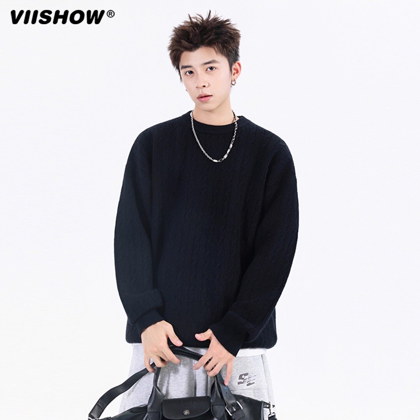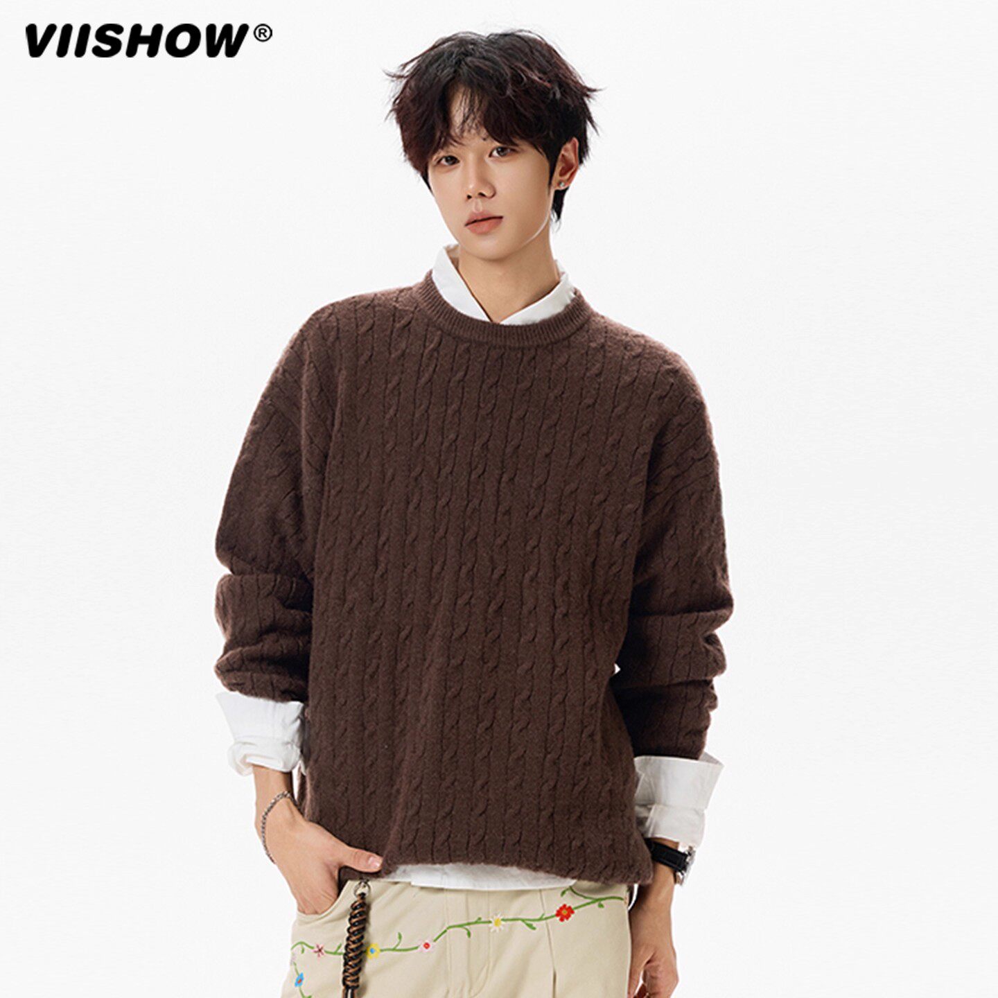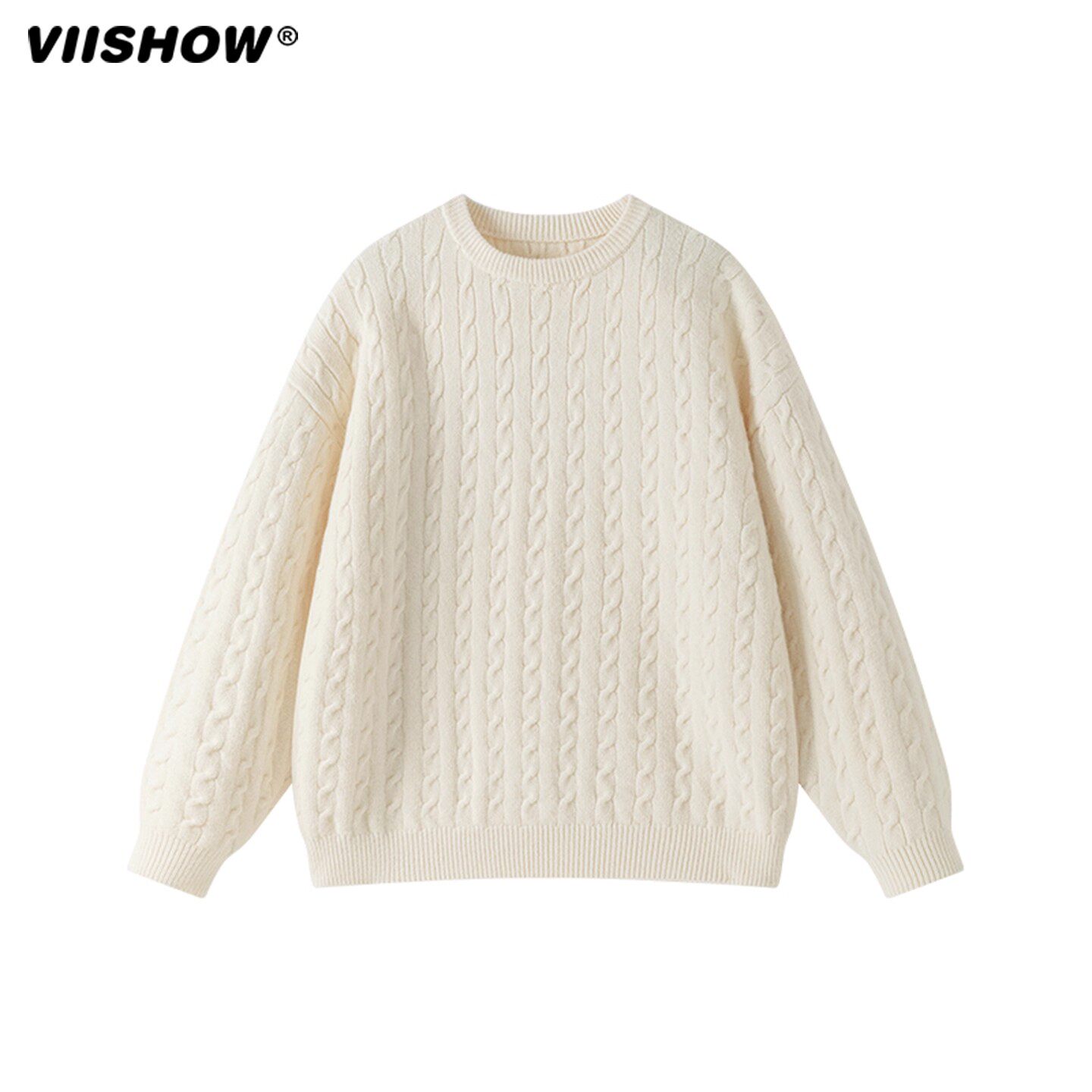 📚 VIISHOW本命年麦穗纹圆领毛衣男冬季百搭针织衫复古休闲情侣内搭