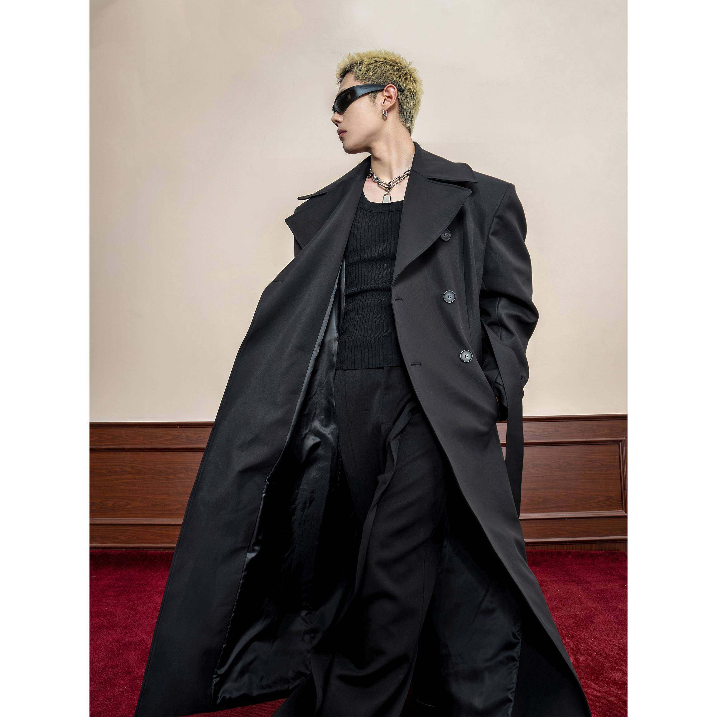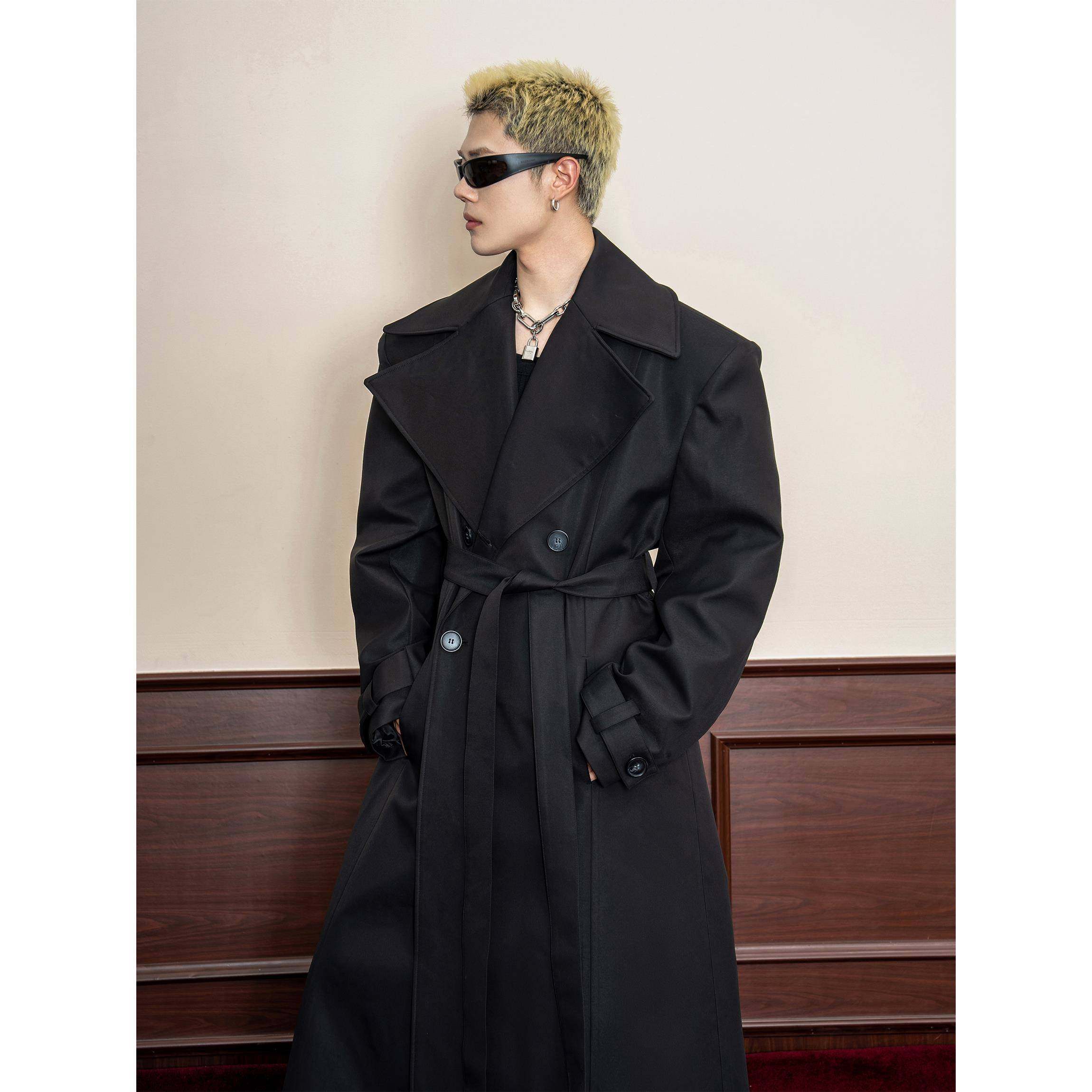 📚 DBW Doublewin复古高级感大翻领收腰风衣外套男阔挺宽肩长款大衣